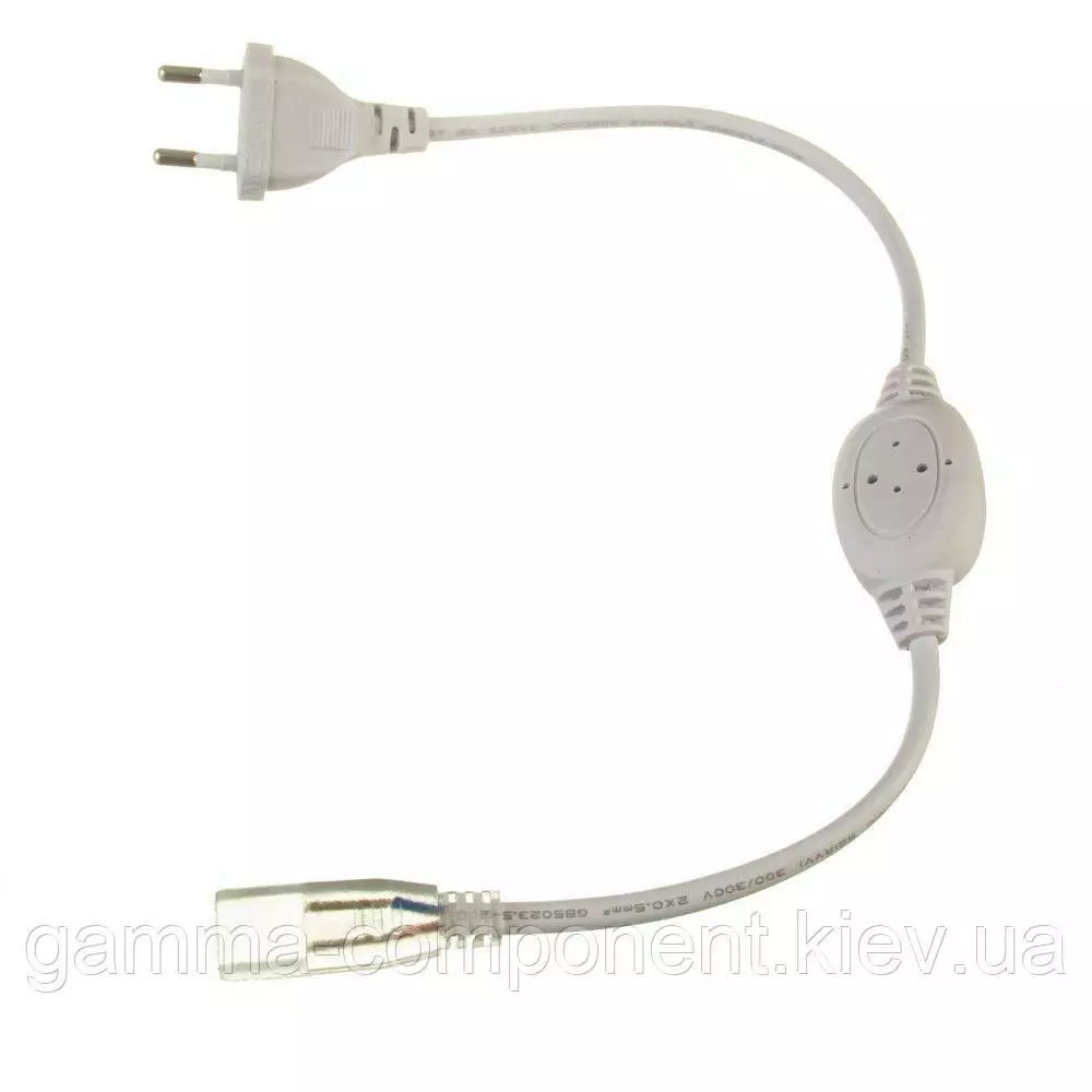 Мережевий адаптер для підключення стрічки 220 вольт являє собою пристрій перетворювальне змінну напругу в постійне. Він складається з трьох частин: конектор, адаптер і вилка. Конектор під'єднується до стрічки через (pin) піни. При підключенні до стрічки необхідно обов'язково перевірити відповідність межосного відстані між пінами і каналами харчування стрічки, вони повинні збігатися. Адаптер перетворює змінну напругу в постійне, вилка адаптера підключається до мережі 220В.