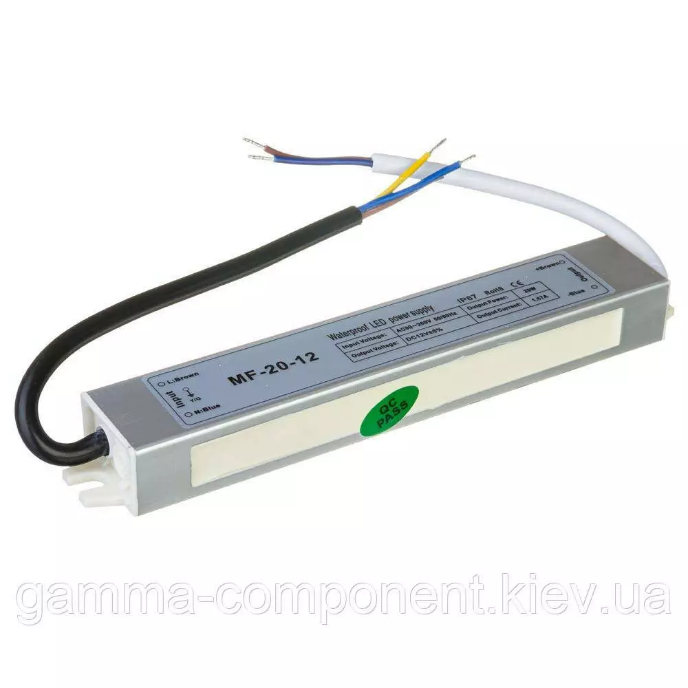 Герметичний імпульсний блок живлення на 12 вольт 20 ватт виконаний в металевому корпусі з пасивною системою охолодження. Блок живлення являє собою перетворювач змінної напруги 220 Вольт в постійне 12 Вольт. Він виготовлений з електронних компонентів високої якості, що гарантує стабільну і тривалу роботу.