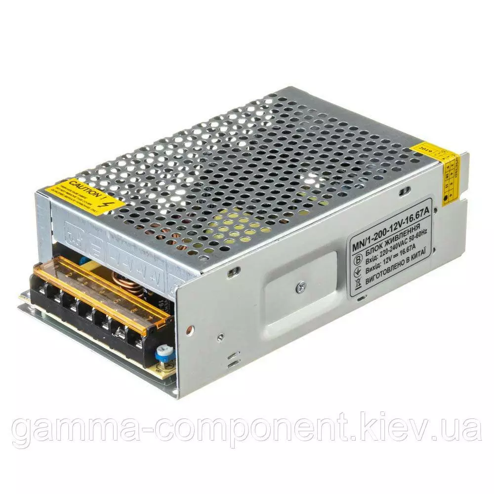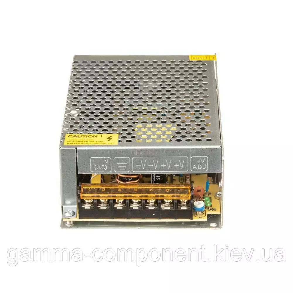 Імпульсний блок живлення на 12 вольт з підстроюванням вихідної напруги виконаний в перфорованому металевому корпусі з пасивною системою охолодження. Блок живлення являє собою перетворювач змінної напруги 220 Вольт в постійне 12 Вольт.