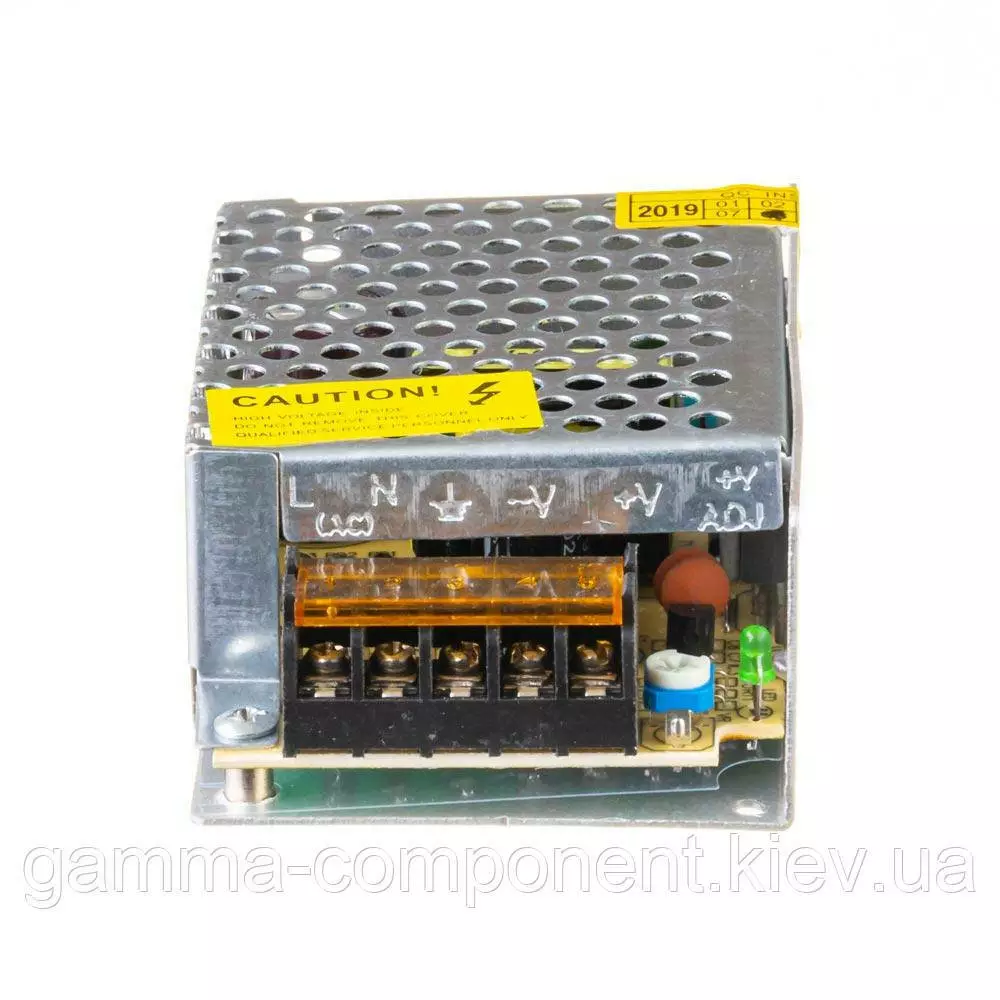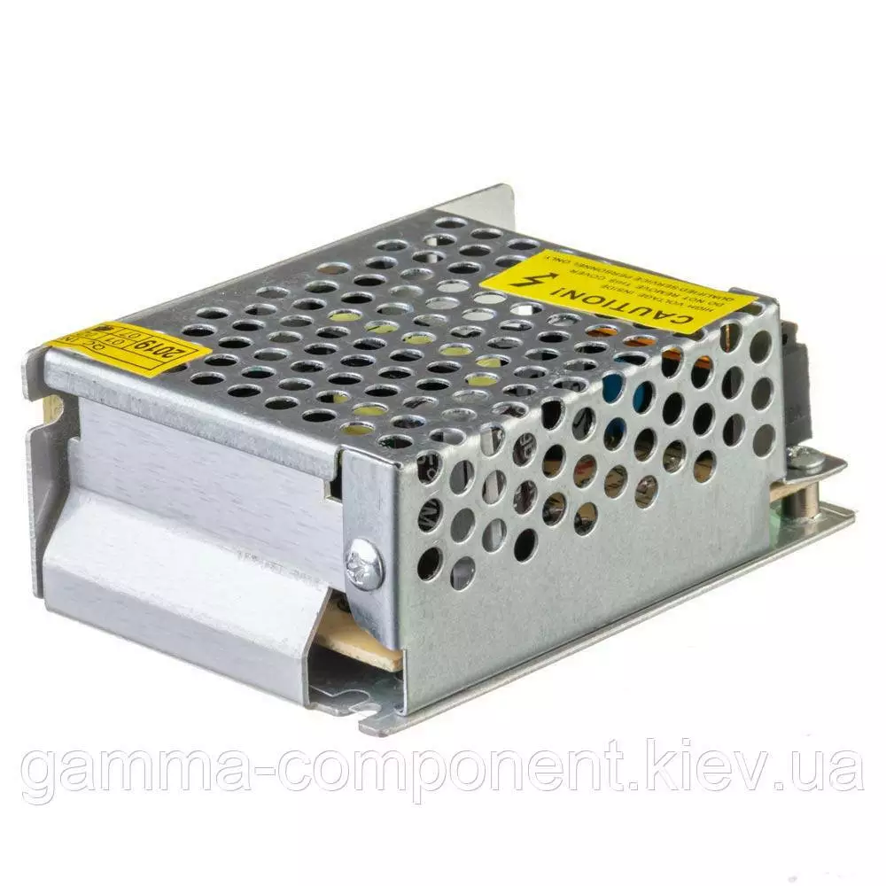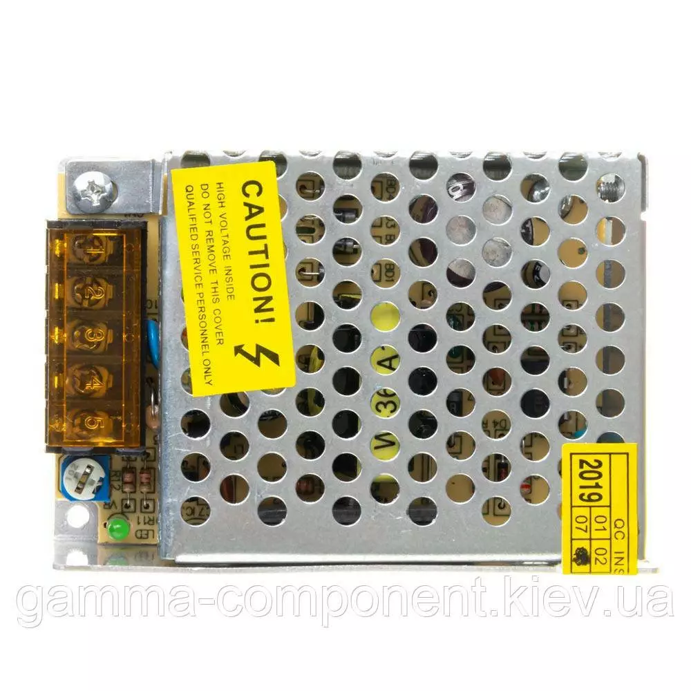 Імпульсний блок живлення на 12 вольт з підстроюванням вихідної напруги виконаний в перфорованому металевому корпусі з пасивною системою охолодження.