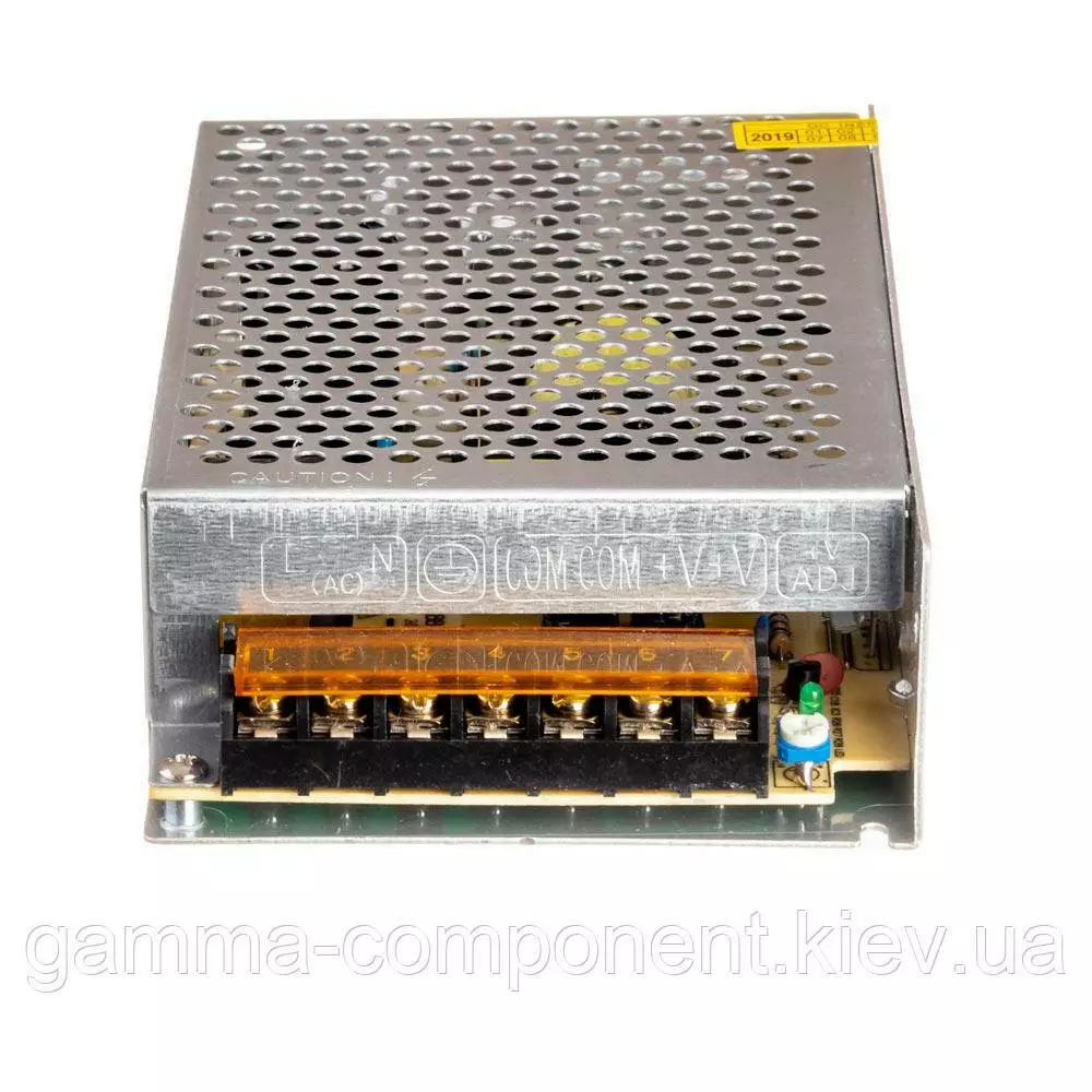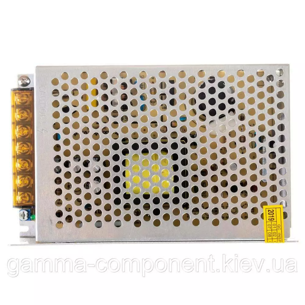 Імпульсний блок живлення на 12 вольт з підстроюванням вихідної напруги виконаний в перфорованому металевому корпусі з пасивною системою охолодження.