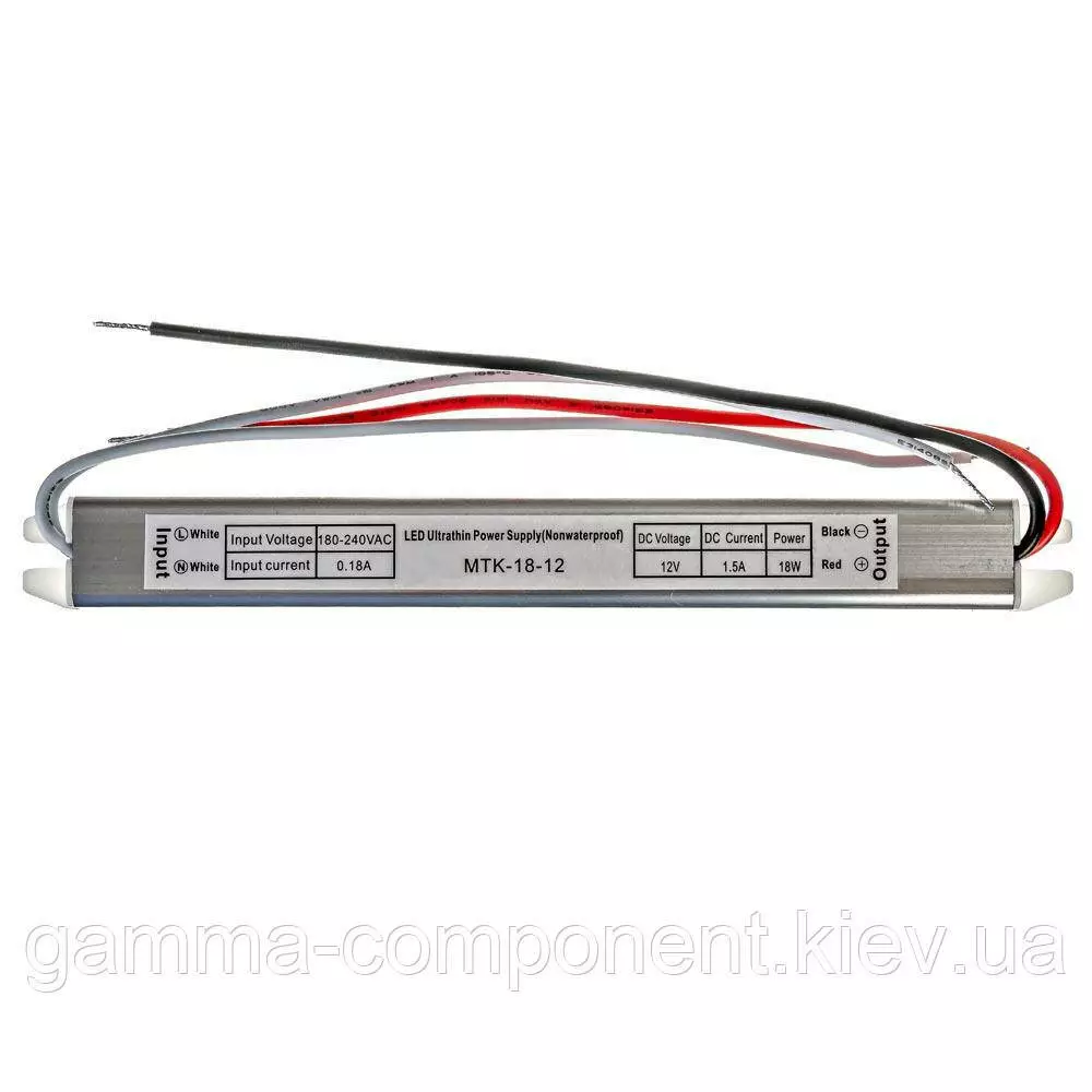 Блок живлення 12В 18W SLIM являє собою якісний і надійний перетворювач змінної напруги 220 Вольт в постійне 12 Вольт, відмітною перевагою якого є ультратонкий, подовжений корпус. Ця особливість дозволяє монтувати джерело живлення в самих важкодоступних місцях, таких як: вузькі ніші, антресолі, полки, а також встановлювати його за карнизами і дзеркалами. Даний імпульсний блок живлення на 12 вольт виконаний в металевому корпусі з пасивною системою охолодження. В основному використовується для живлення світлодіодних джерел світла 12 Вольт.