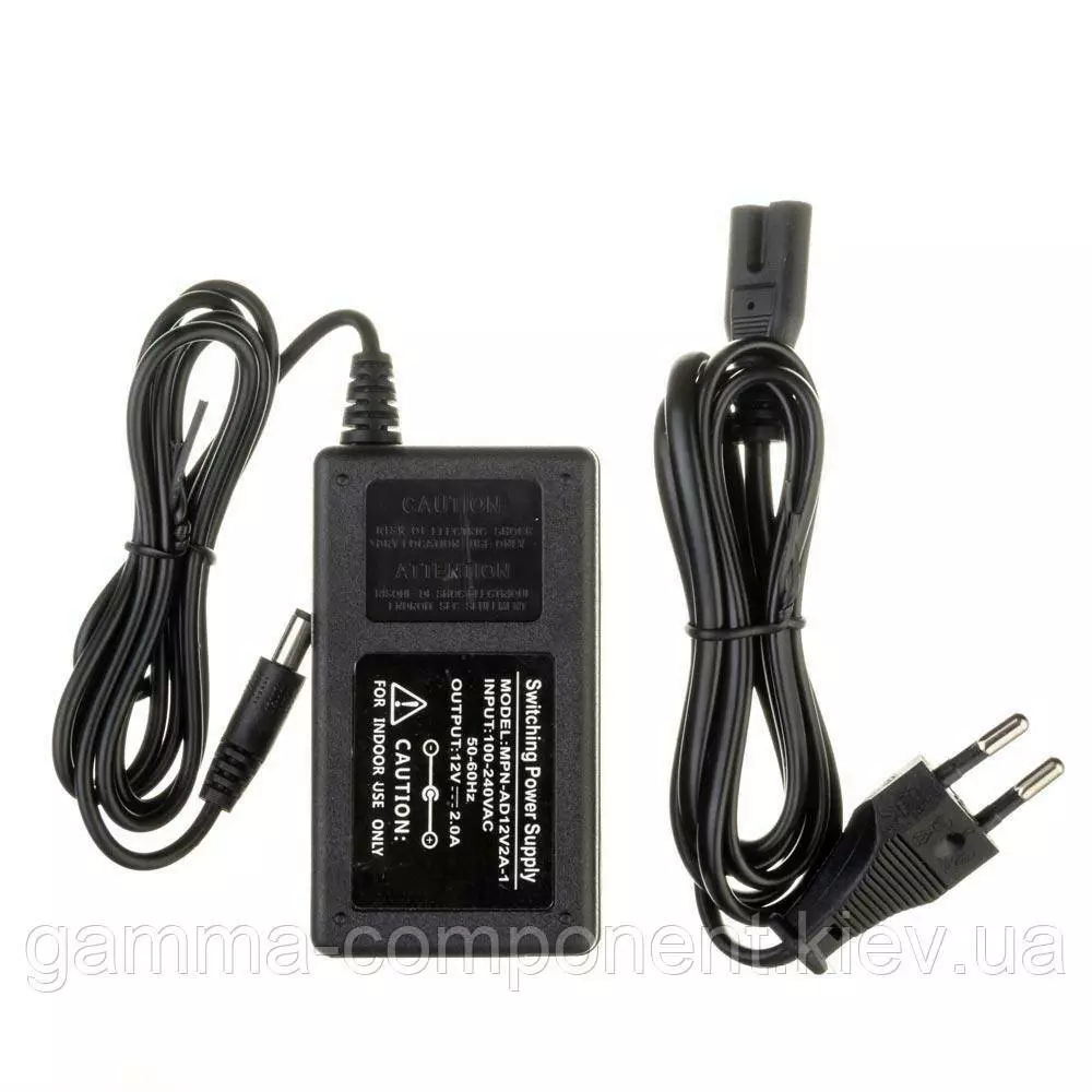 Блок живлення даного типу працює від змінного напруги – 220В, стабілізовану напругу на виході (output) 12В, максимальний вихідний струм – 2А. Вихідна максимальна потужність складає 24Вт. Тип роз'єму штекера mini jack 5.5x2.5 мм. Ступінь вологозахисту блоку живлення становить IP20, що допускає встановлення в сухих закритих приміщеннях зі зниженим рівнем вологи.