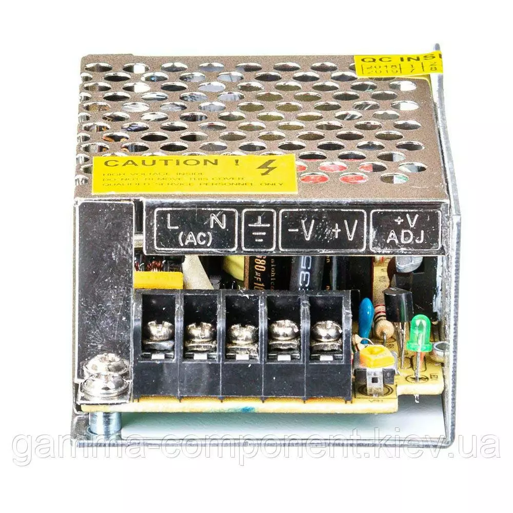 Блок живлення даного типу працює від змінного напруги – 220В, стабілізовану напругу на виході (output) 5В, максимальний вихідний струм – 5А. Наявність потенціометра дозволяє точно налаштувати напруга на виході блоку живлення. Вихідна максимальна потужність – 25Вт. Має рівень захисту IP20 - використовується в умовах зниженої вологості повітря усередині приміщень.