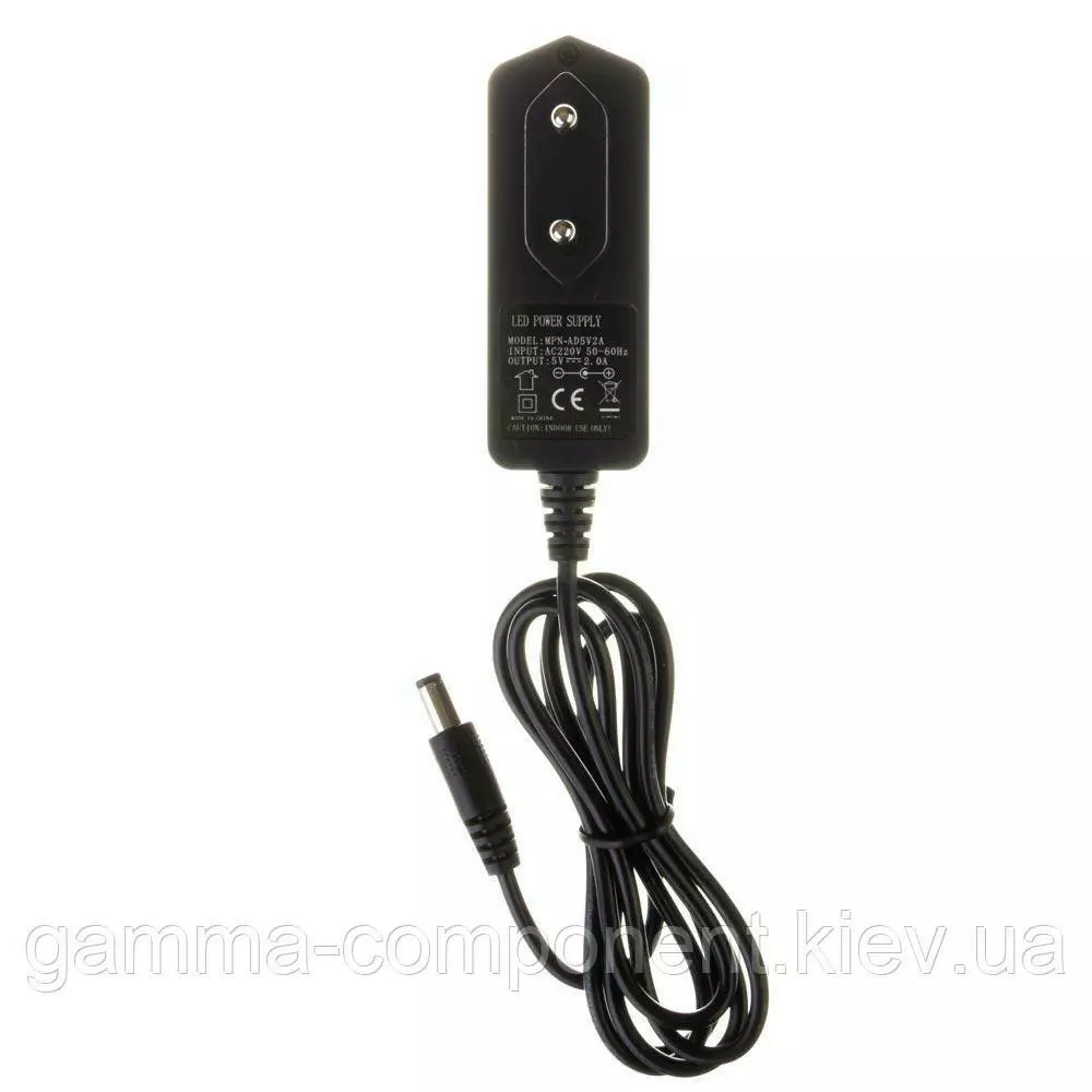 Блок живлення даного типу працює від змінного напруги – 220В, стабілізовану напругу на виході (output) 5В, максимальний вихідний струм – 2А. Вихідна максимальна потужність складає 10Вт, тип роз'єму mini jack 5.5x2.5 мм. Має рівень захисту IP20 - використовується в умовах зниженої вологості повітря усередині приміщень.