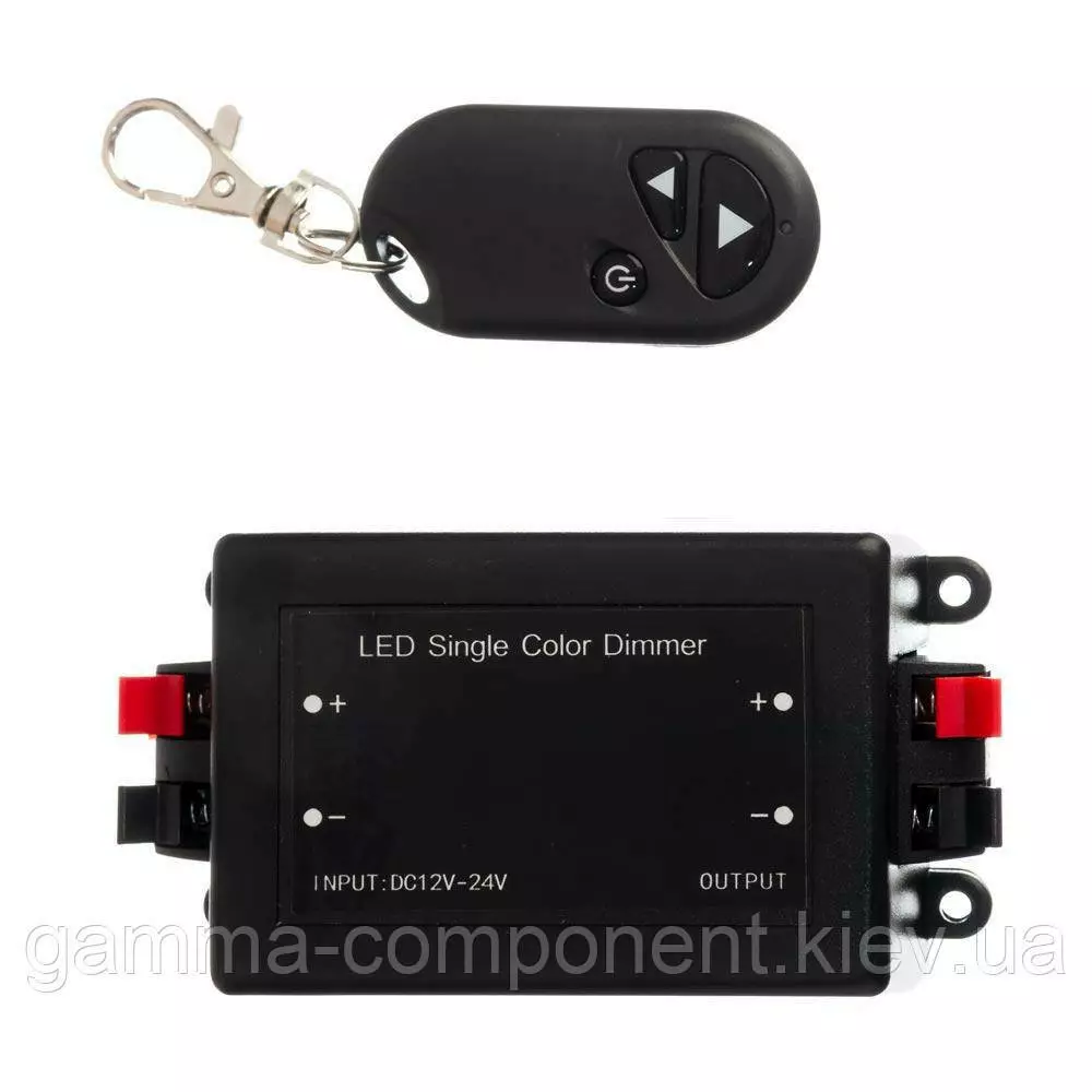Функції пристрою: включення і вимикання, зменшення і збільшення яскравості світіння монохромних світлодіодних джерел світла. Дистанційне керування здійснюється за допомогою радіопульта на 3 клавіші в радіусі до 50 метрів. Диммер надзвичайно зручний в експлуатації, так як немає необхідності направляти пульт на датчик руху: сигнал передається по радіоканалу.