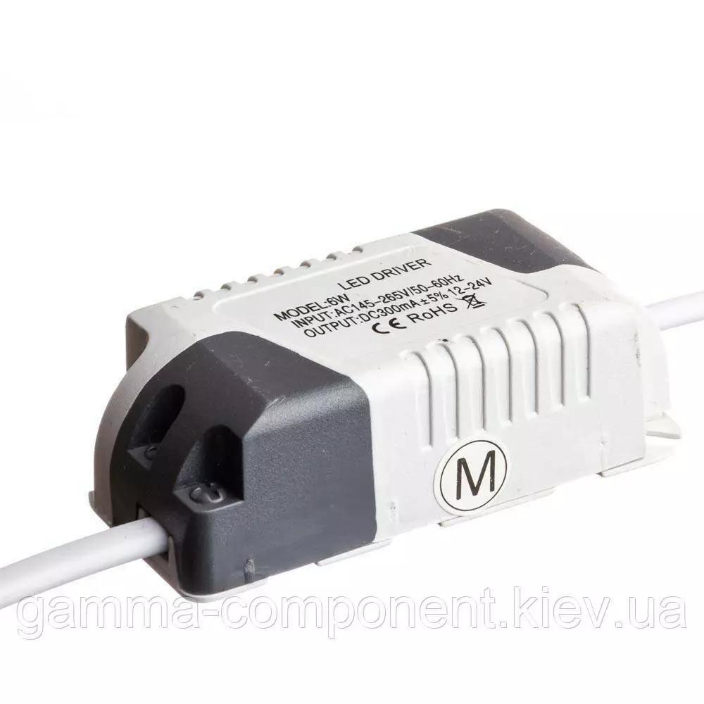 Лід драйвер перетворює змінну напругу (220В) в постійне напруга 12В-26В). Даний драйвер призначений для живлення світлодіодного світильника потужністю 6Вт. Стабілізований струм драйвера є обов'язковою умовою для правильного функціонування світлодіодних приладів протягом тривалого часу.
