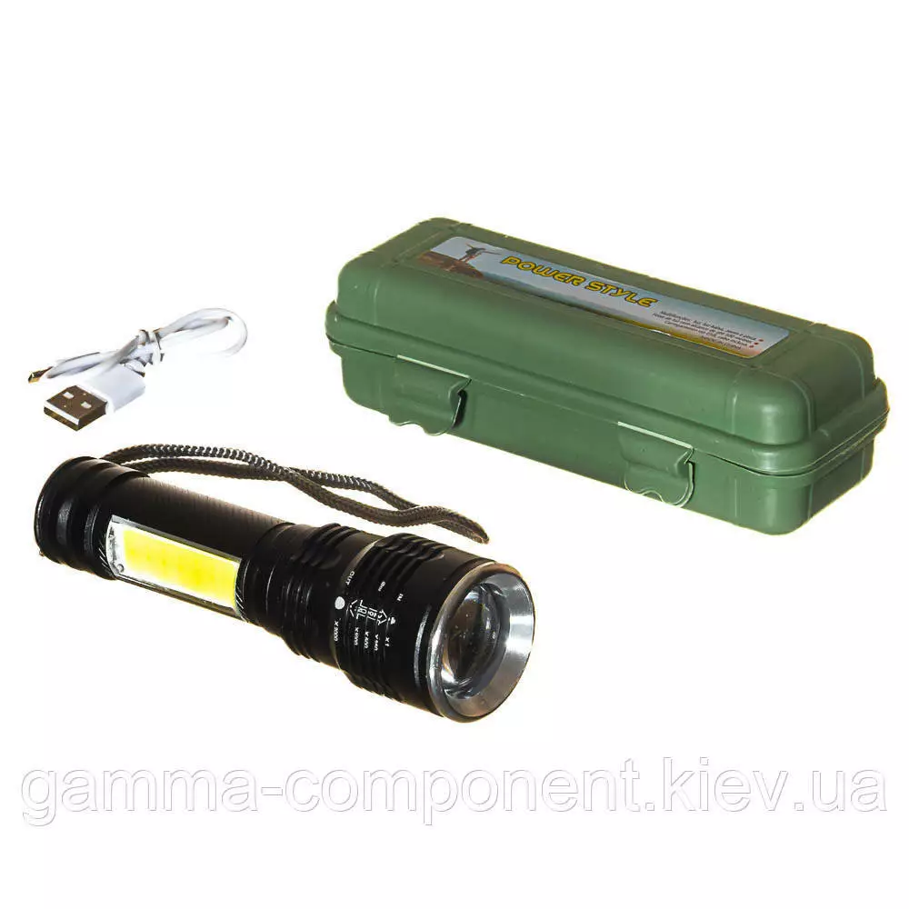 Ліхтар ручний акумуляторний у боксі металевий, чорний T6-30, micro USB