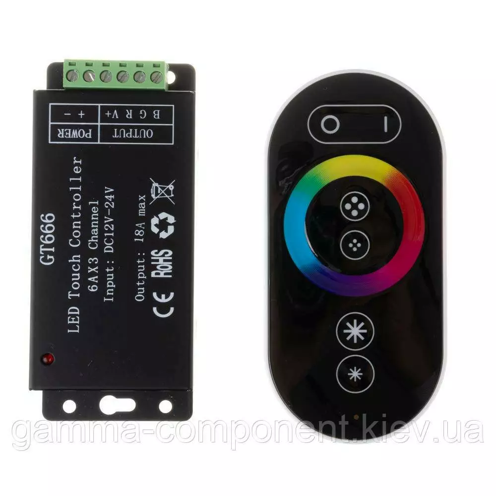 Led контролер з триканальним виходом і струмом 18А (вихідний струм не більше 6А на один канал) у чорному алюмінієвому корпусі. Даний пристрій може зберігати останню налаштування в пам'яті після відключення живлення.