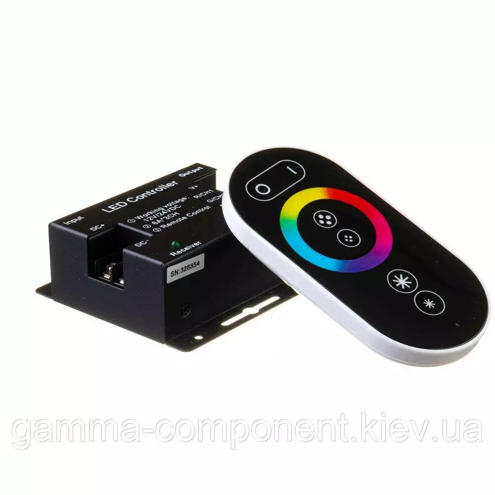 У пам'яті цього RGB контролера залишається остання програма, що застосовувалася до виключення живлення. Ви завжди зможете правильно настроювати відтінок кольору світіння за допомогою сенсорного кільця на пульті. Даний контролер йде в комплекті з сенсорним радіо пультом білого кольору. Іншими словами, даний контролер — це якісний аксесуар для регулювання кольору та режиму світіння лід RGB стрічки.