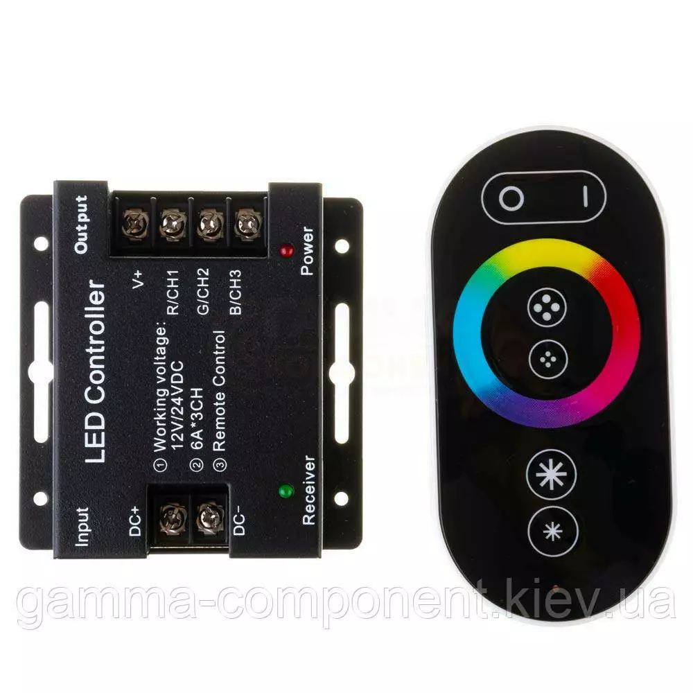 LED контролер світлодіодний RGB 18-12Вт (Radio 6 кнопок) чорний живиться від блоку живлення 12V стабільного електричного струму. Збільшення сигналу можна досягти із застосуванням підсилювача.
