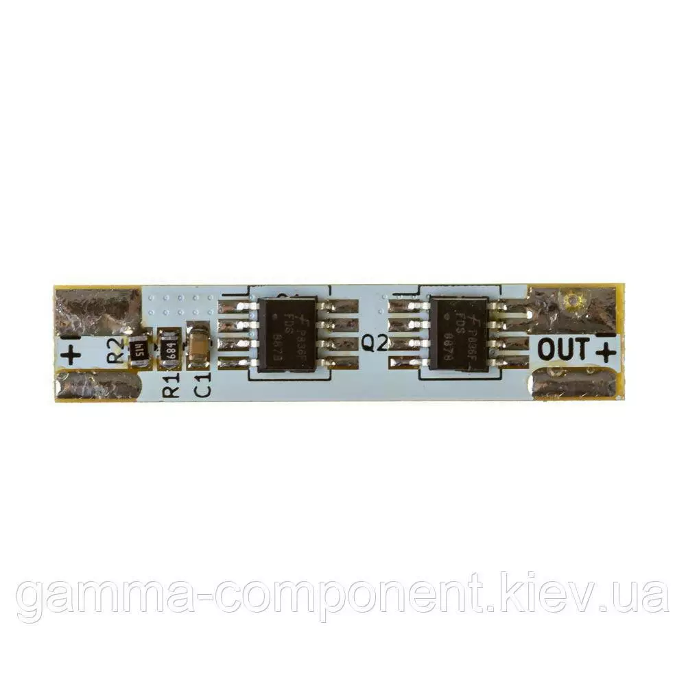 Цей пристрій являє собою модуль для плавного включення світлодіодних стрічок. Застосовується спільно з одноколірної LED-стрічкою, або LED-світильниками, із сумарним струмом навантаження до 8 Ампер, при напрузі живлення 12-24 Вольт. Пристрій забезпечує плавне включення діодного стрічки протягом 250-500 мілісекунд