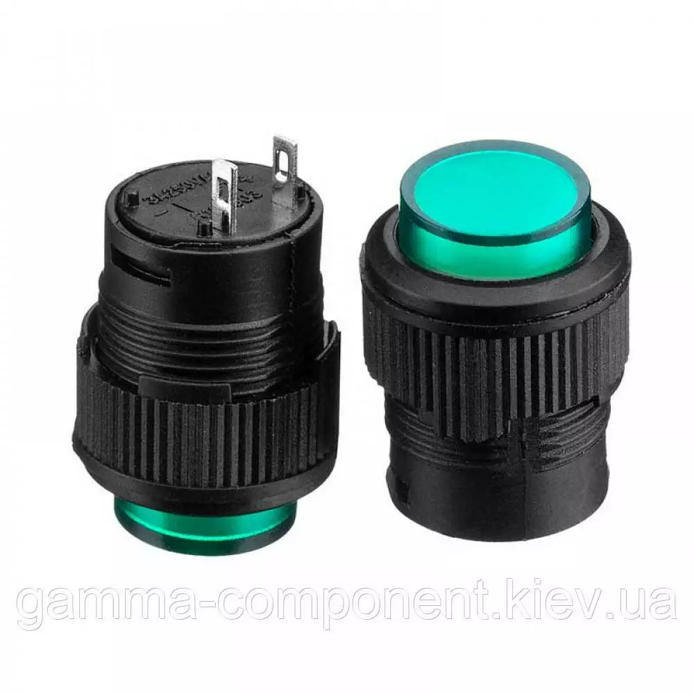 Натискна Кнопка R16-503AD, ON-OFF, зелена LED