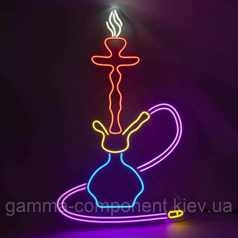 Неонова вивіска виготовлена із гнучкого світлодіодного неону 12 В. Матеріал основи – прозорий акрил. В комплектацію входить блок живлення для підключення до мережі живлення 220 В.