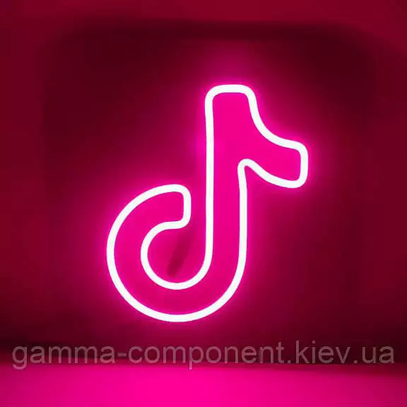 Неонова вивіска Тік-ток виготовлена з гнучкого світлодіодного неону 12 В. Матеріал основи - прозорий акрил. У комплектацію входить блок живлення для під'єднання до мережі живлення 220 В.
