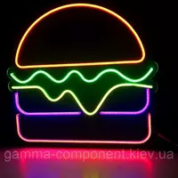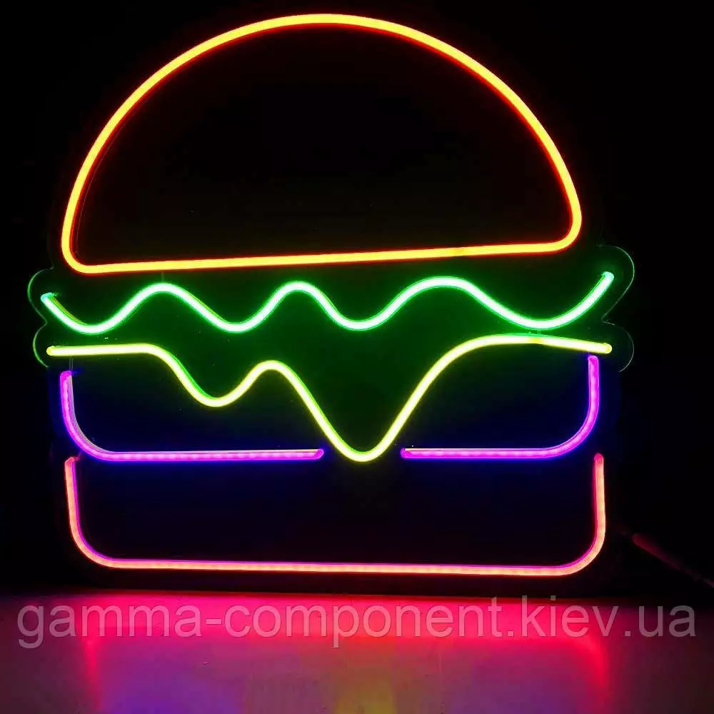 Неонова вивіска для fast-food Бургер (500х485 мм)