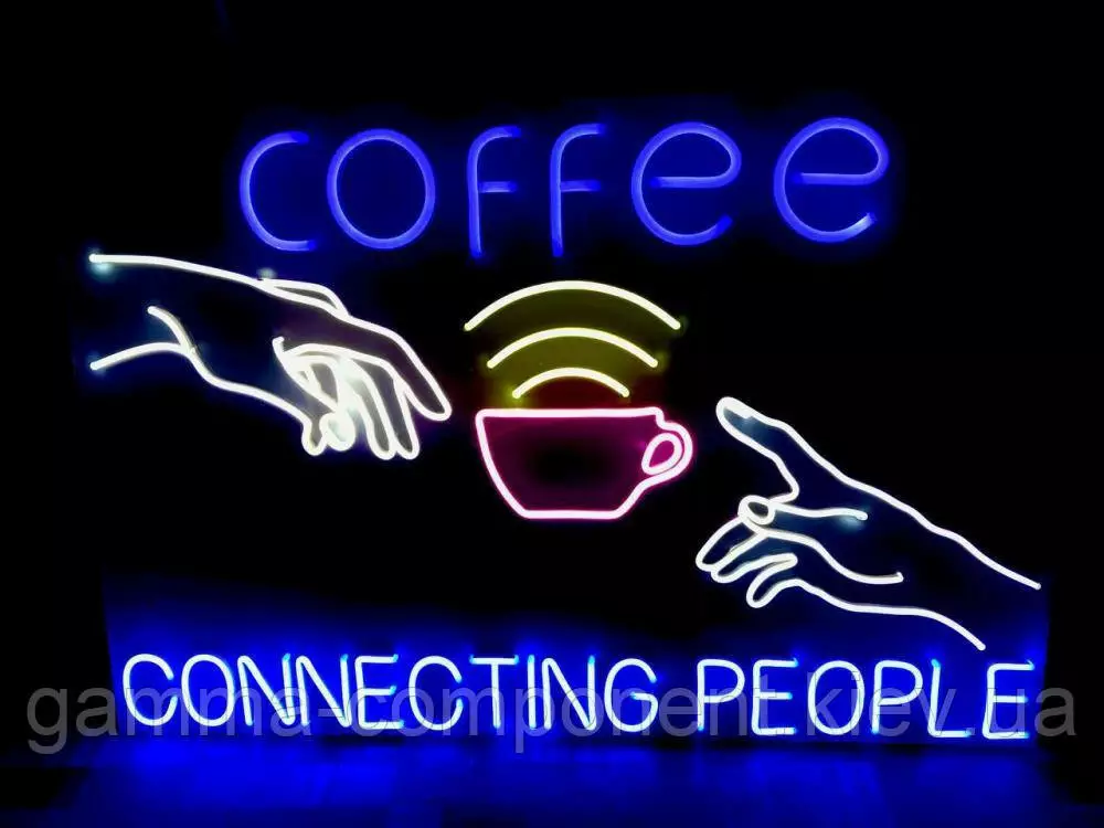 Неонова вивіска для кав'ярні COFFEE CONNECTING PEOPLE (900х600)