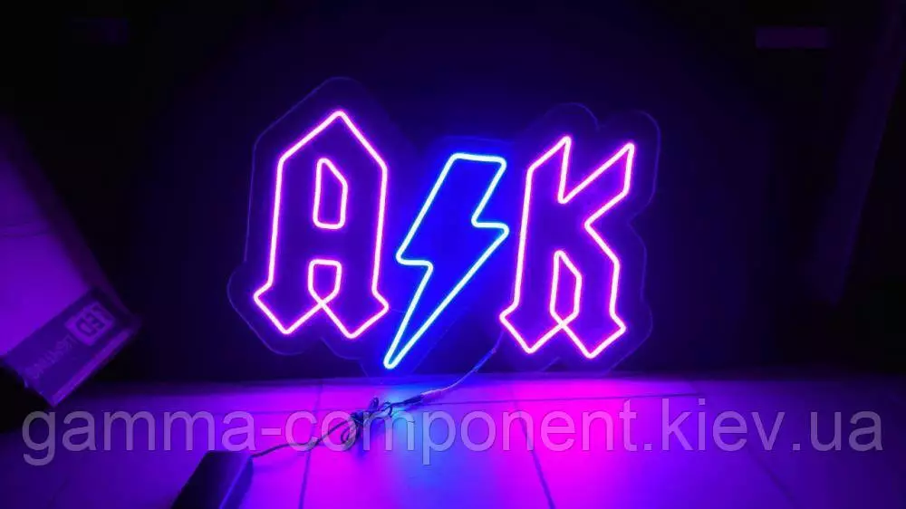 Неонова вивіска виготовлена з гнучкого світлодіодного неону 12 В. Матеріал основи — прозорий акрил. До комплектації входить блок живлення для під'єднання до мережі живлення 220 В.
