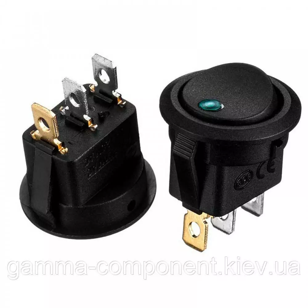 Перемикач KCD1-101EN-8, ON-OFF, LED зелений