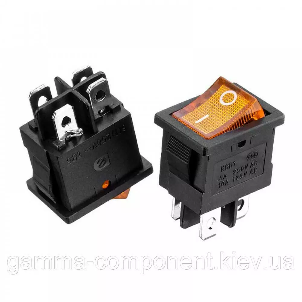 Перемикач KCD1-201N-4, ON-OFF, (4pin) жовтий