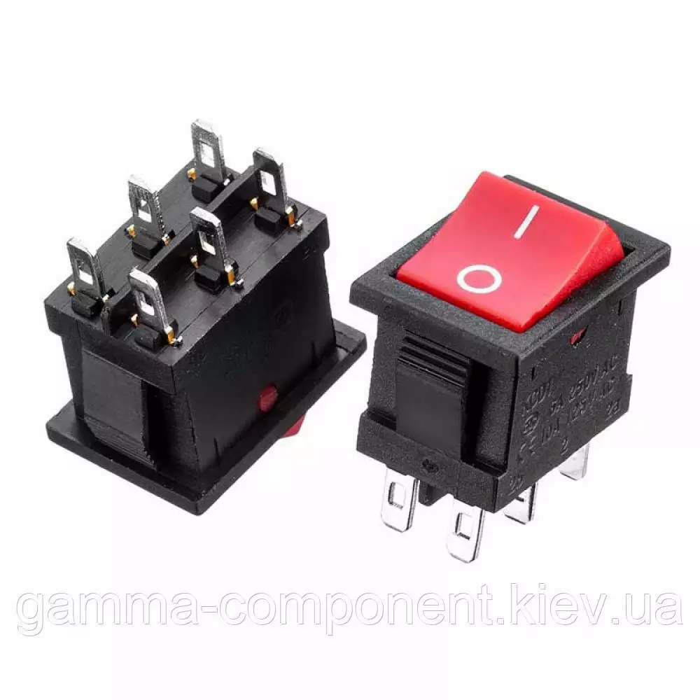 Перемикач KCD1-202-1, ON-ON, (6 pin) червоний