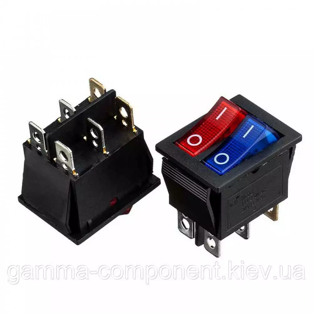 Перемикач KCD2-2101N, ON-OFF, (6 pin) R+B (червоний+синій)