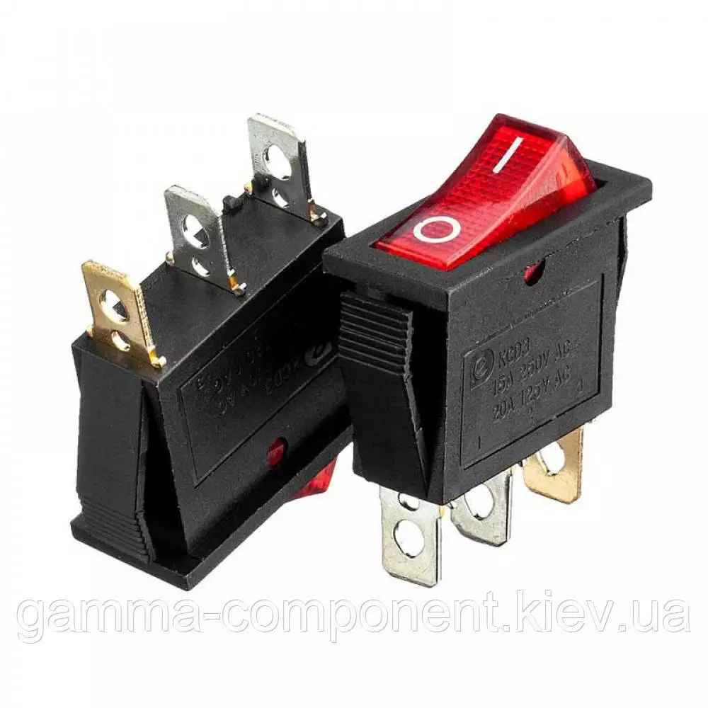 Перемикач KCD3-102/N, ON-OFF, 10А (3pin), 250V, червоний