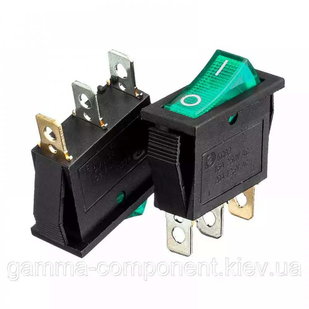 Перемикач KCD3-102/N, ON-OFF, 10А (3pin), 250V, зелений