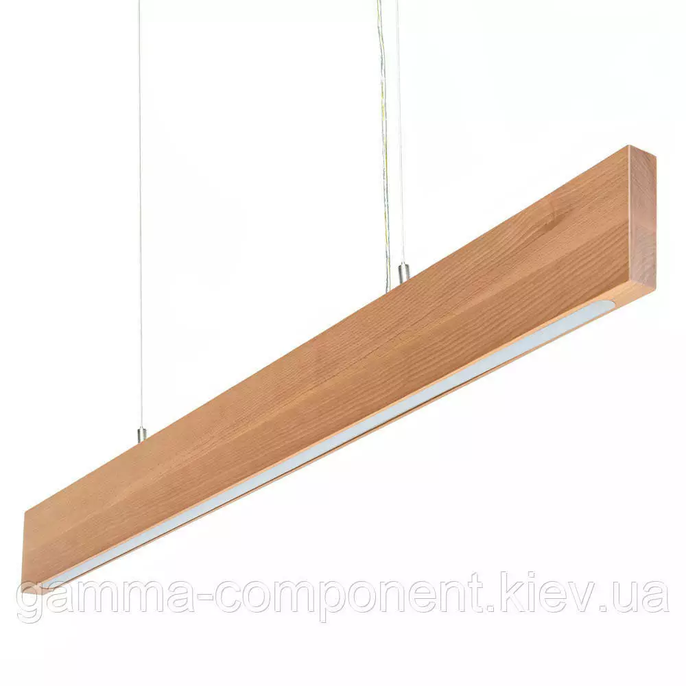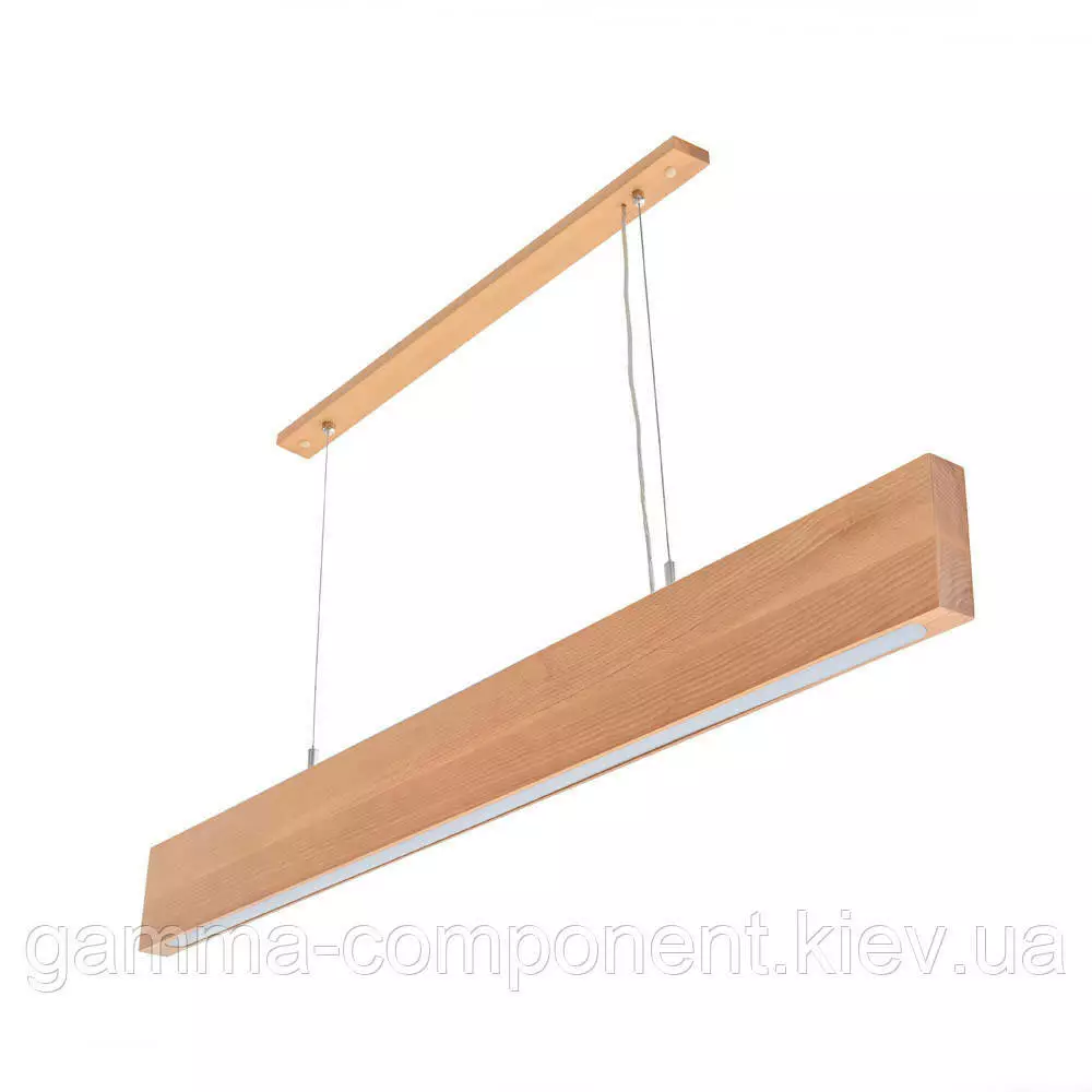 Міцний дерев'яний корпус підвісного світлодіодного світильника виготовлений із бука в красивому бурштиновому кольорі з природною фактурою натурального матеріалу. Світлове джерело представлене вбудованим LED-елементом із білим світінням (4000 К) і кутом освітлення 1200. Прилад має такі технічні характеристики:
