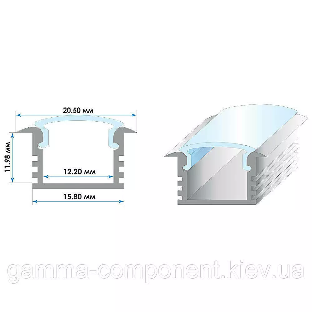 Профіль врізний глибокий анодований ПФ-23 2 м (комплект із розсіювачем)