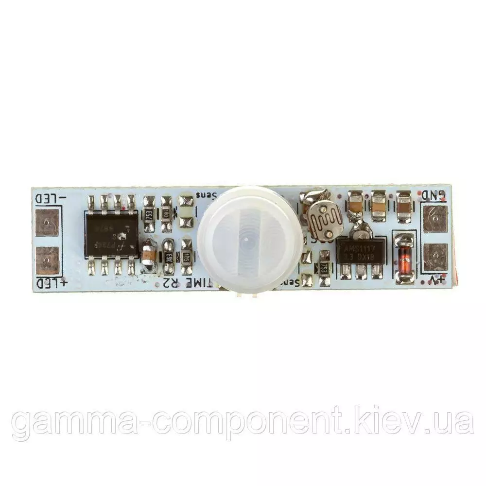 PIR сенсор для профілю сенсор являє собою вимикач з датчиком руху для монтажу в алюмінієвий світлодіодний профіль з LED-стрічкою на 12 В і максимальним струмом навантаження до 5 А з фотоелементом, який включає освітлення тільки в темний час доби. Модуль поставляється у вигляді готової, налаштованої плати з лінзою Френеля.