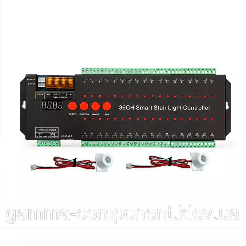 Підсвітка драбини з датчиком руху за допомогою LED Контролера DC5-24V 300W 36 channels stairs Flow sensor controller.