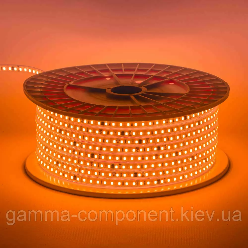 Світлодіодна стрічка жовтогаряча 220V герметична AVT smd2835 120 LED/м 9 Вт/м IP65 11х5.5mm