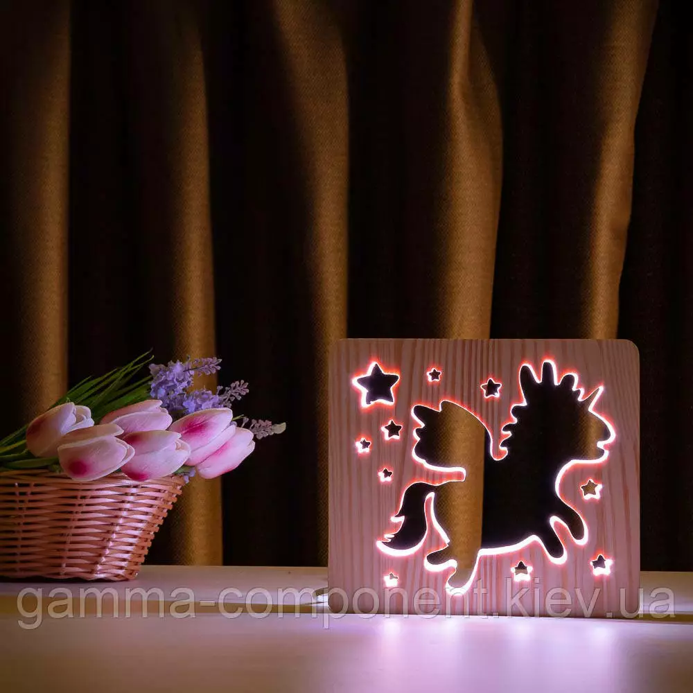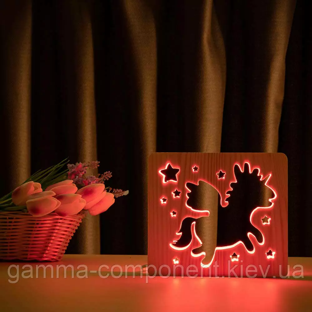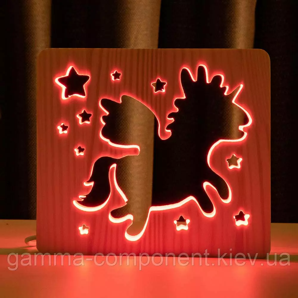Світильник нічник з дерева LED "Чарівний єдиноріг" з пультом і регулюванням кольори, RGB