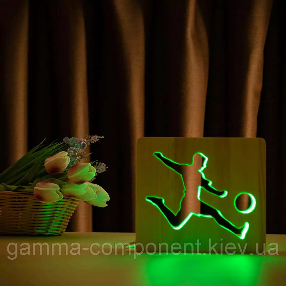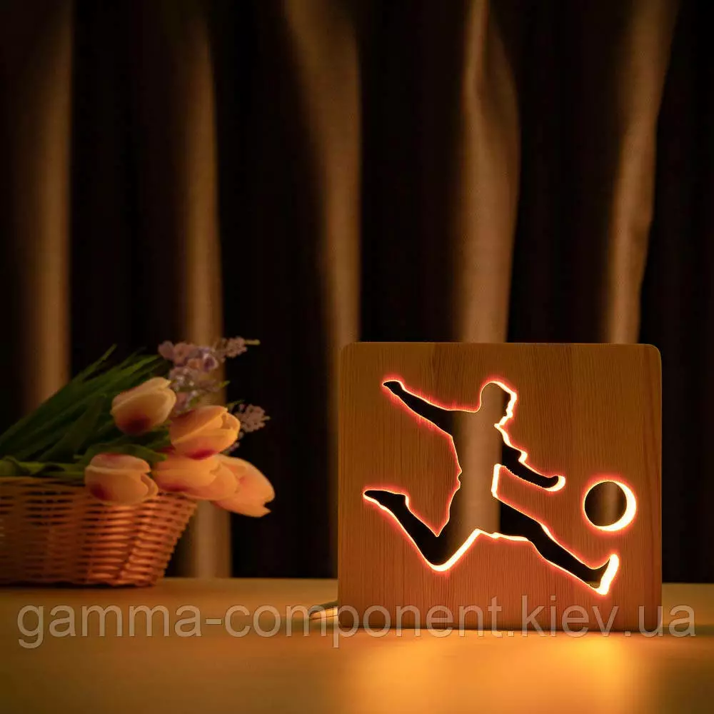 Світильник нічник ArtEco Light з дерева LED "Футболіст з м'ячем" з пультом та регулюванням кольору, RGB