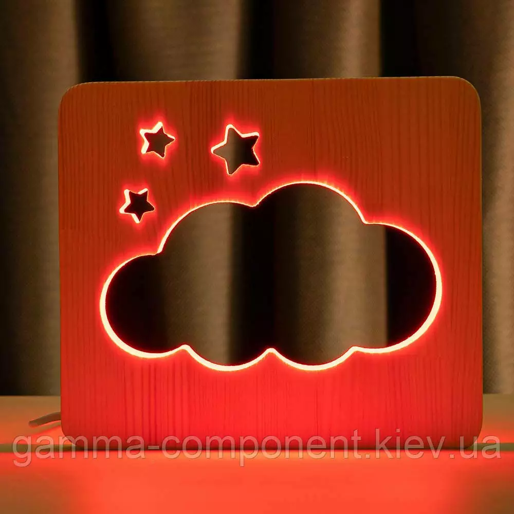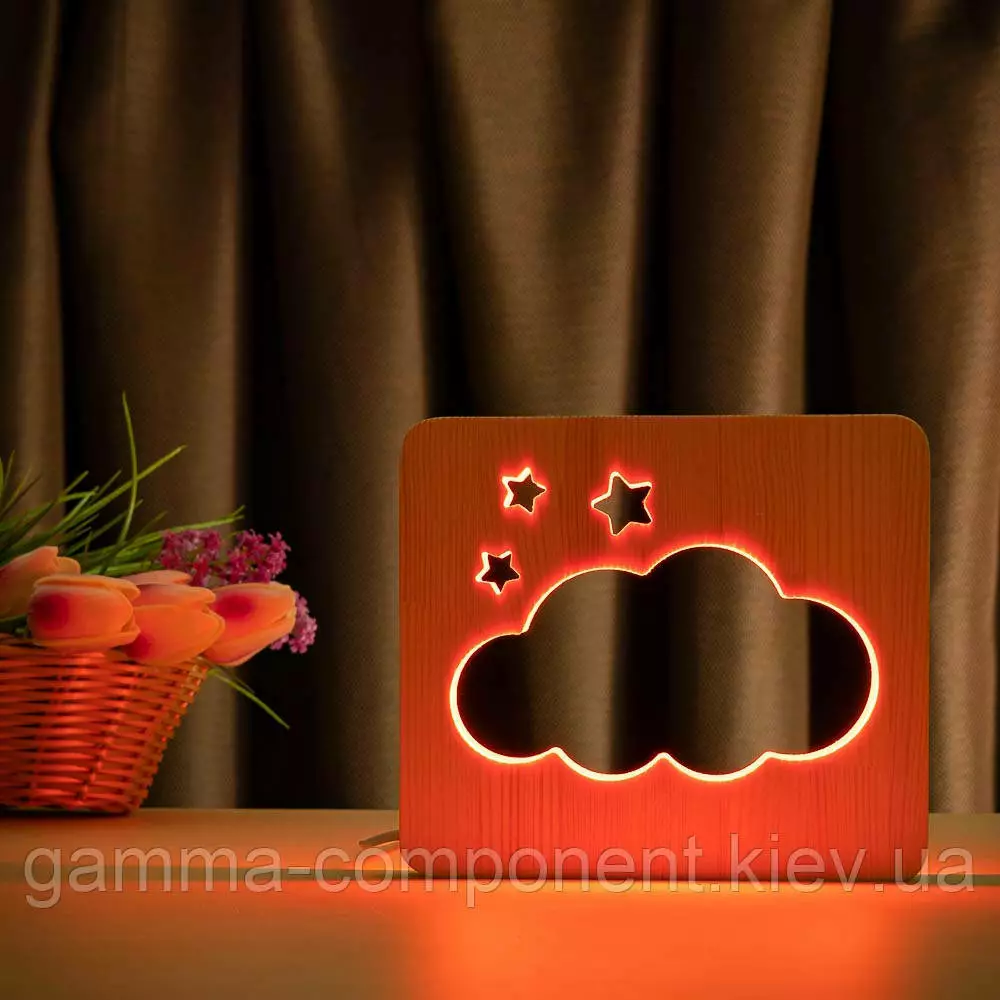 Світильник нічник ArtEco Light з дерева LED "Хмаринка" з пультом і регулюванням кольори, RGB