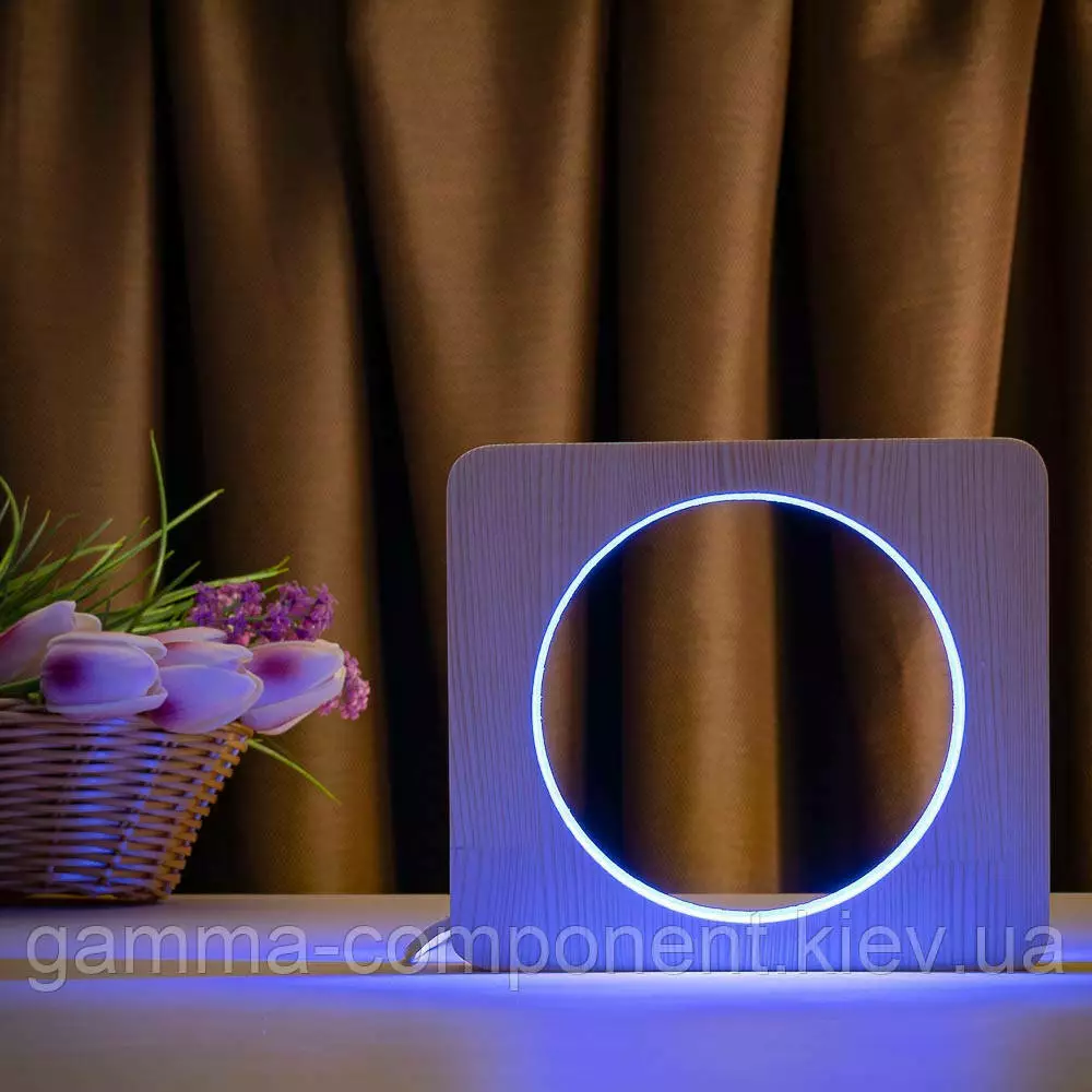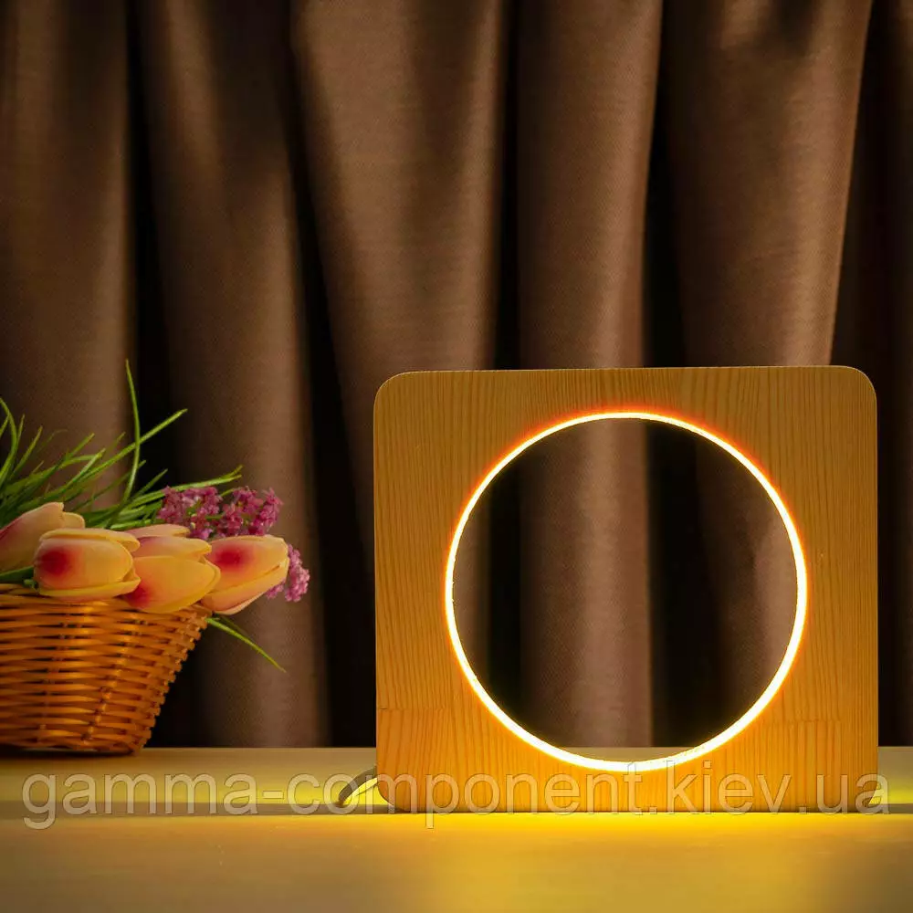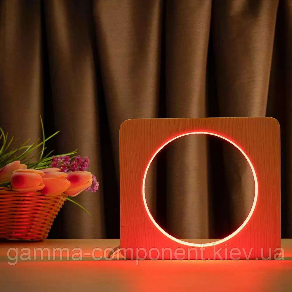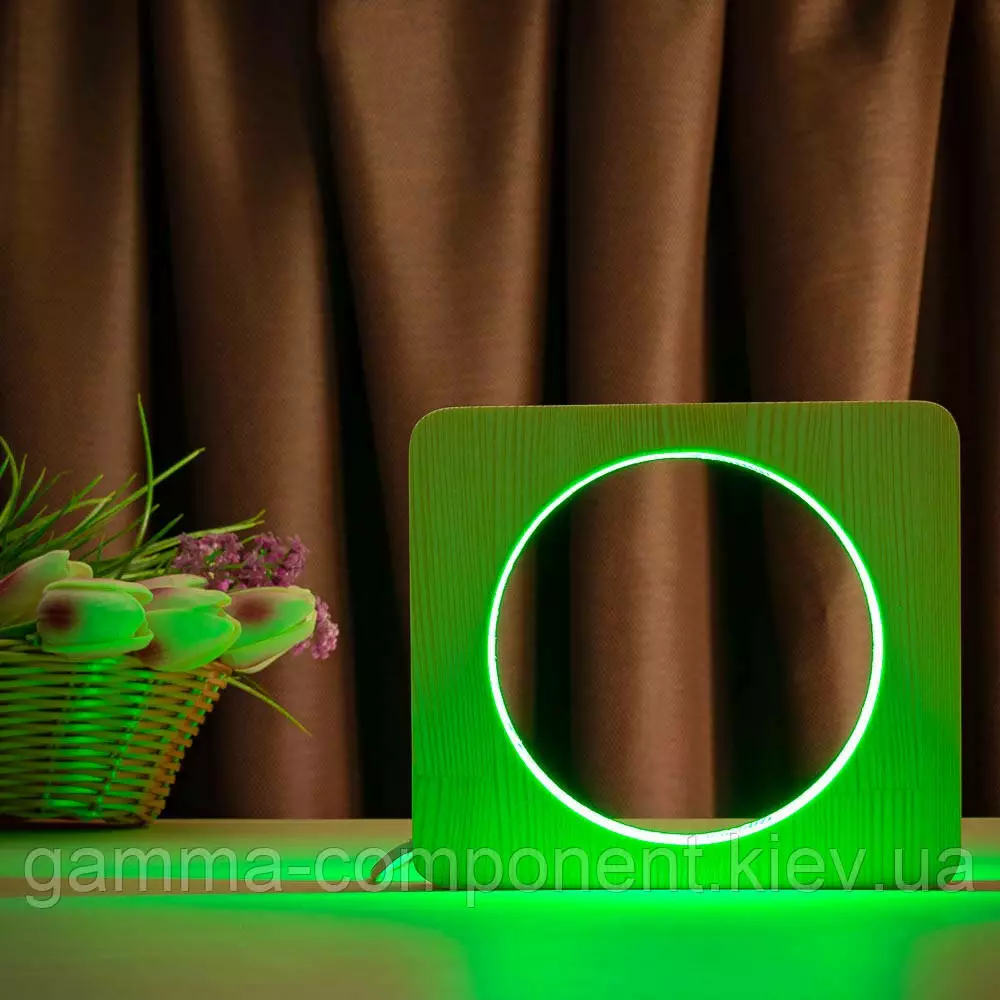 Світильник нічник ArtEco Light з дерева LED "Коло" з пультом і регулюванням кольори, RGB