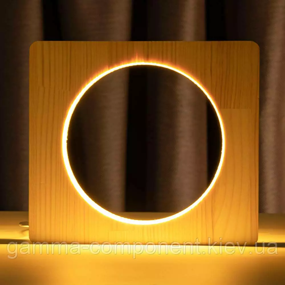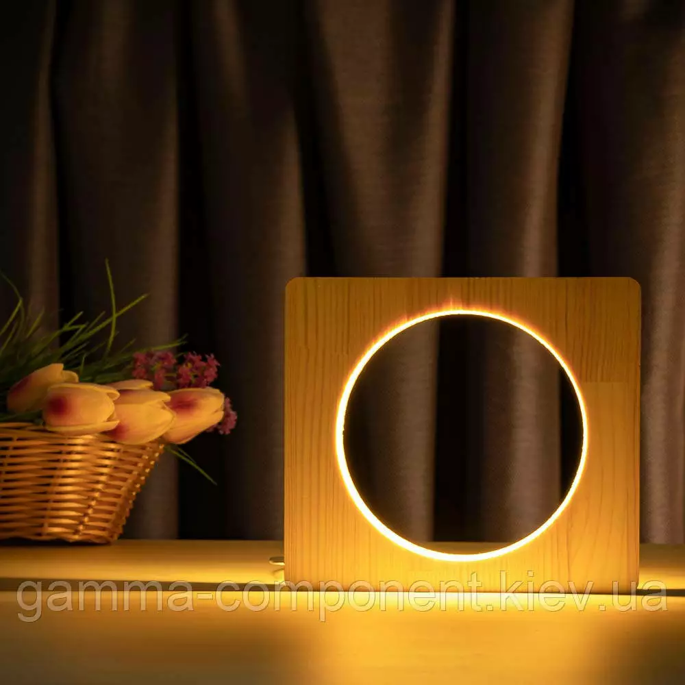 Світильник нічник ArtEco Light з дерева LED "Коло" з пультом і регулюванням світла, колір теплий білий