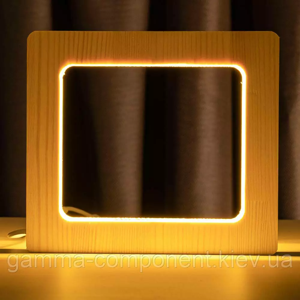 Світильник нічник ArtEco Light з дерева LED "Квадрат" з пультом і регулюванням світла, колір теплий білий