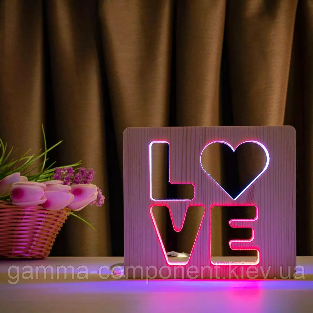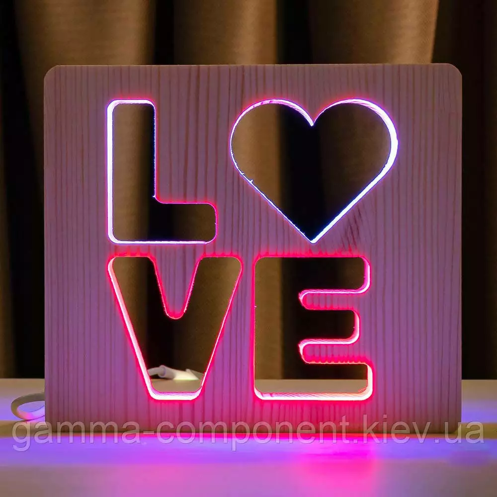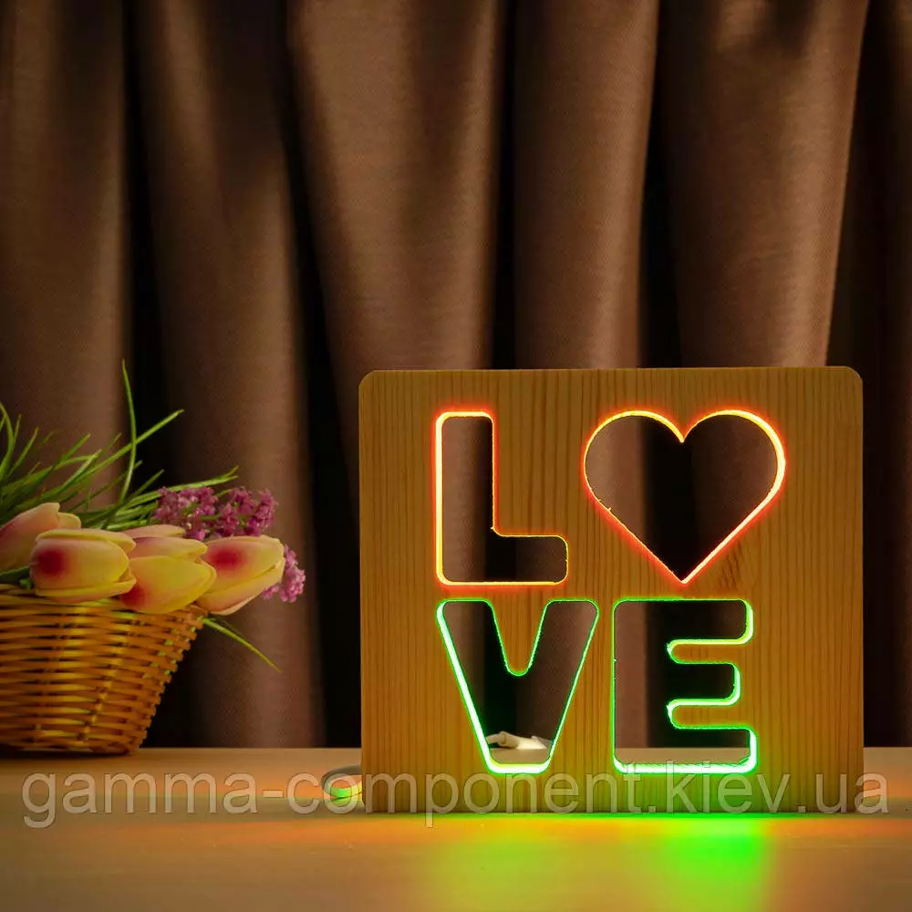 Світильник нічник ArtEco Light з дерева LED "LOVE" з пультом і регулюванням кольору, подвійний RGB