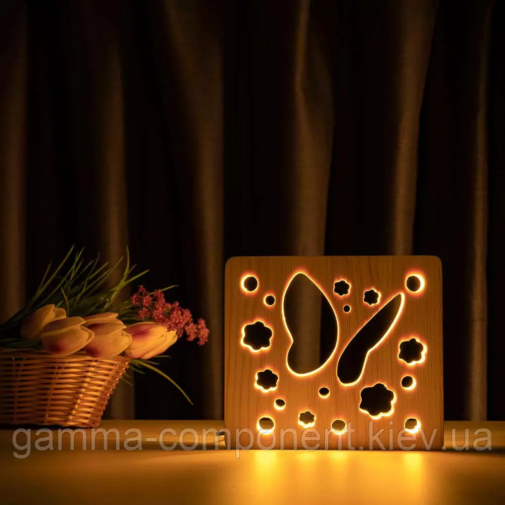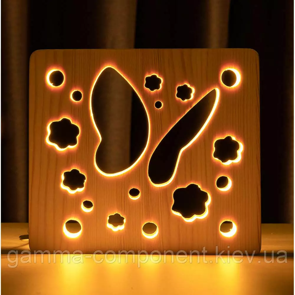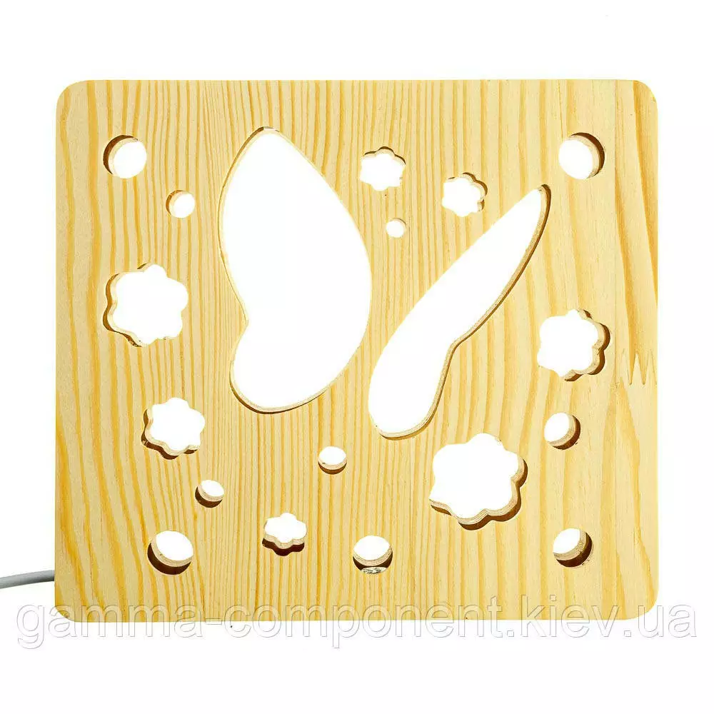 Світильник нічник з дерева LED "Метелик" з пультом і регулюванням світла, колір теплий білий