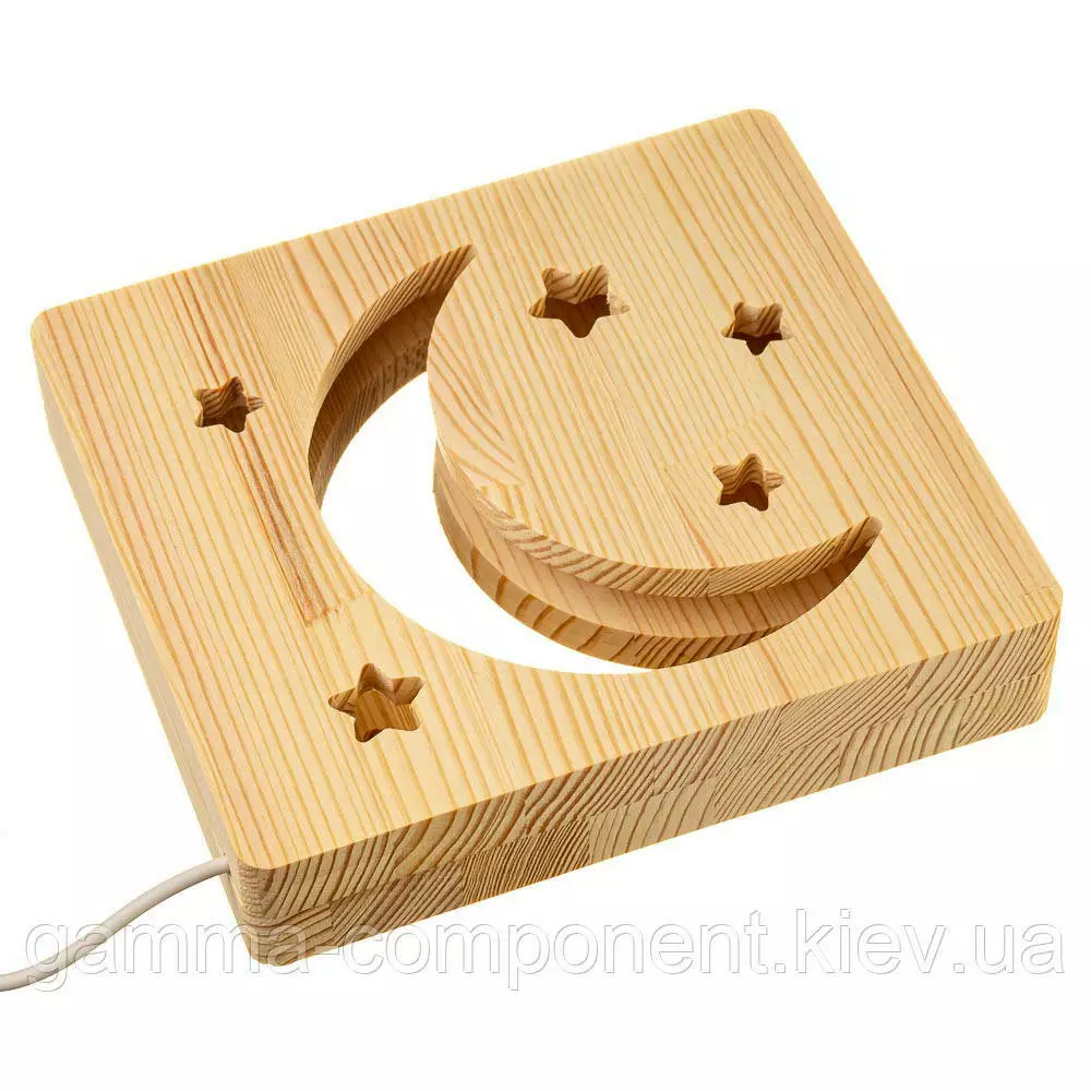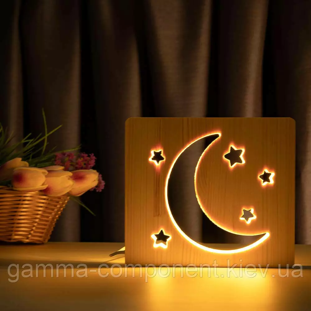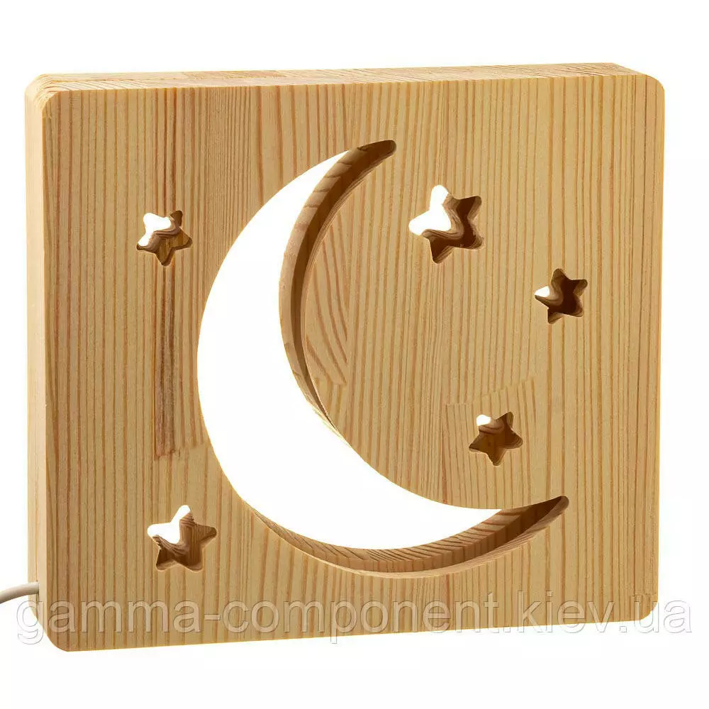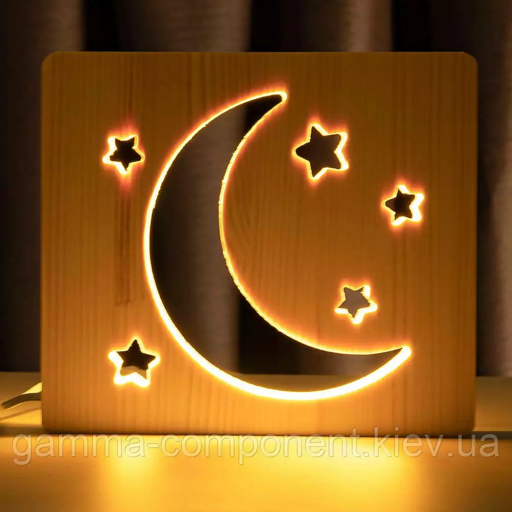 Світильник нічник ArtEco Light з дерева LED "Місяць і зорі" з пультом і регулюванням світла, колір теплий