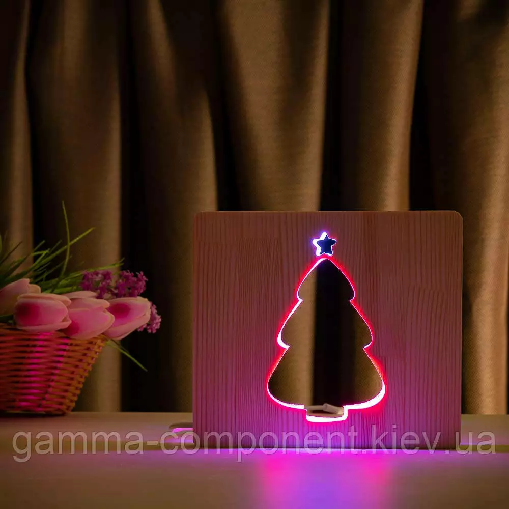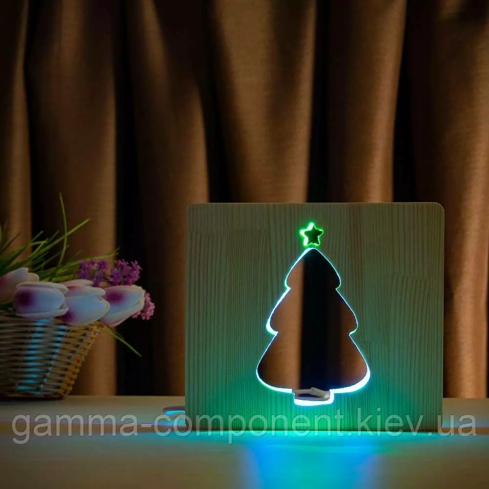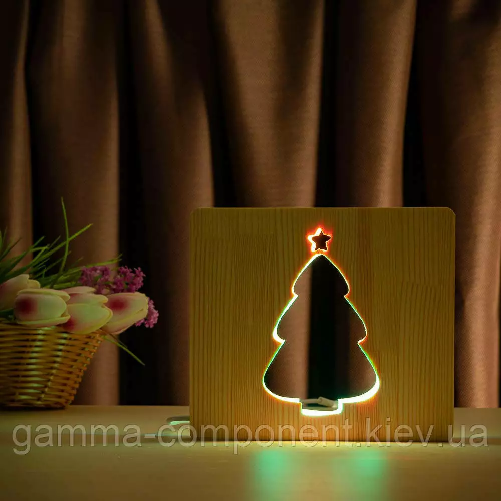 Світильник нічник ArtEco Light з дерева LED "Ялинка під снігом" з пультом і регулюванням кольору, подвійний RGB