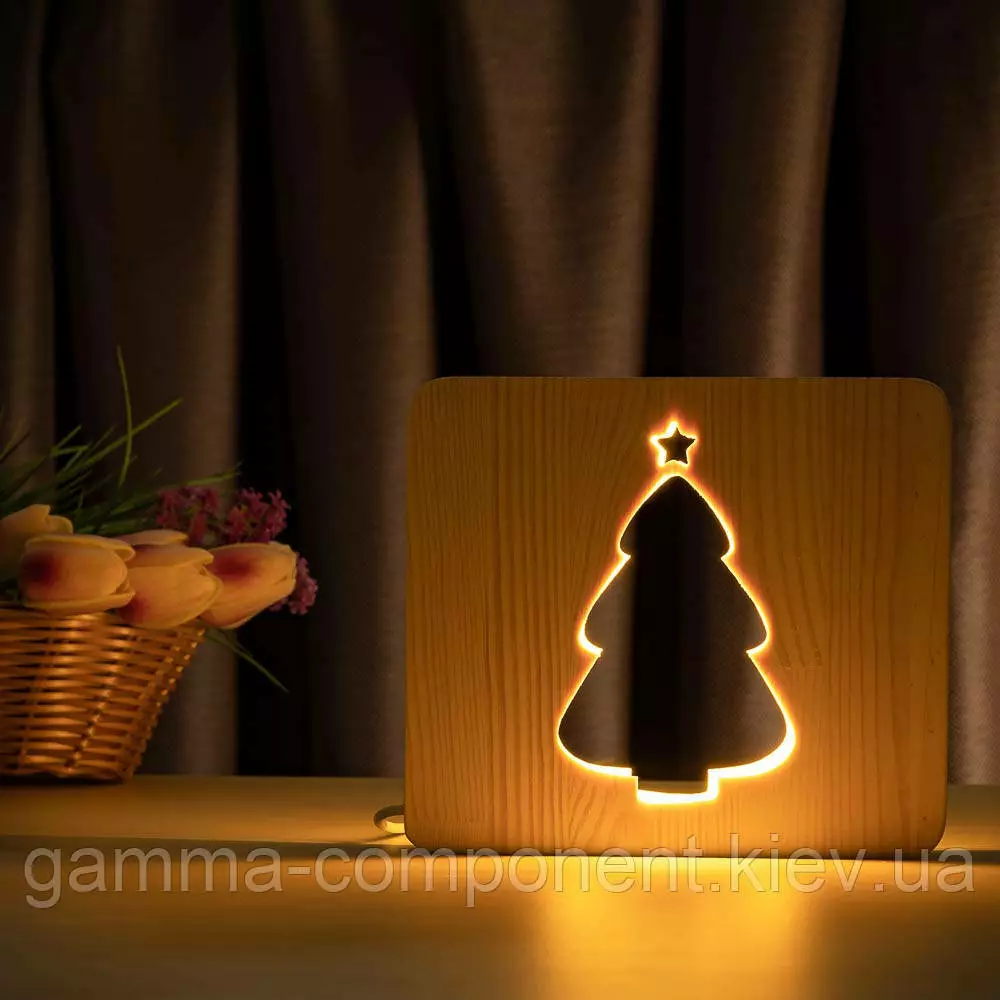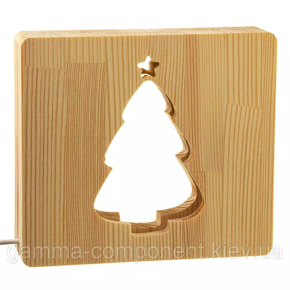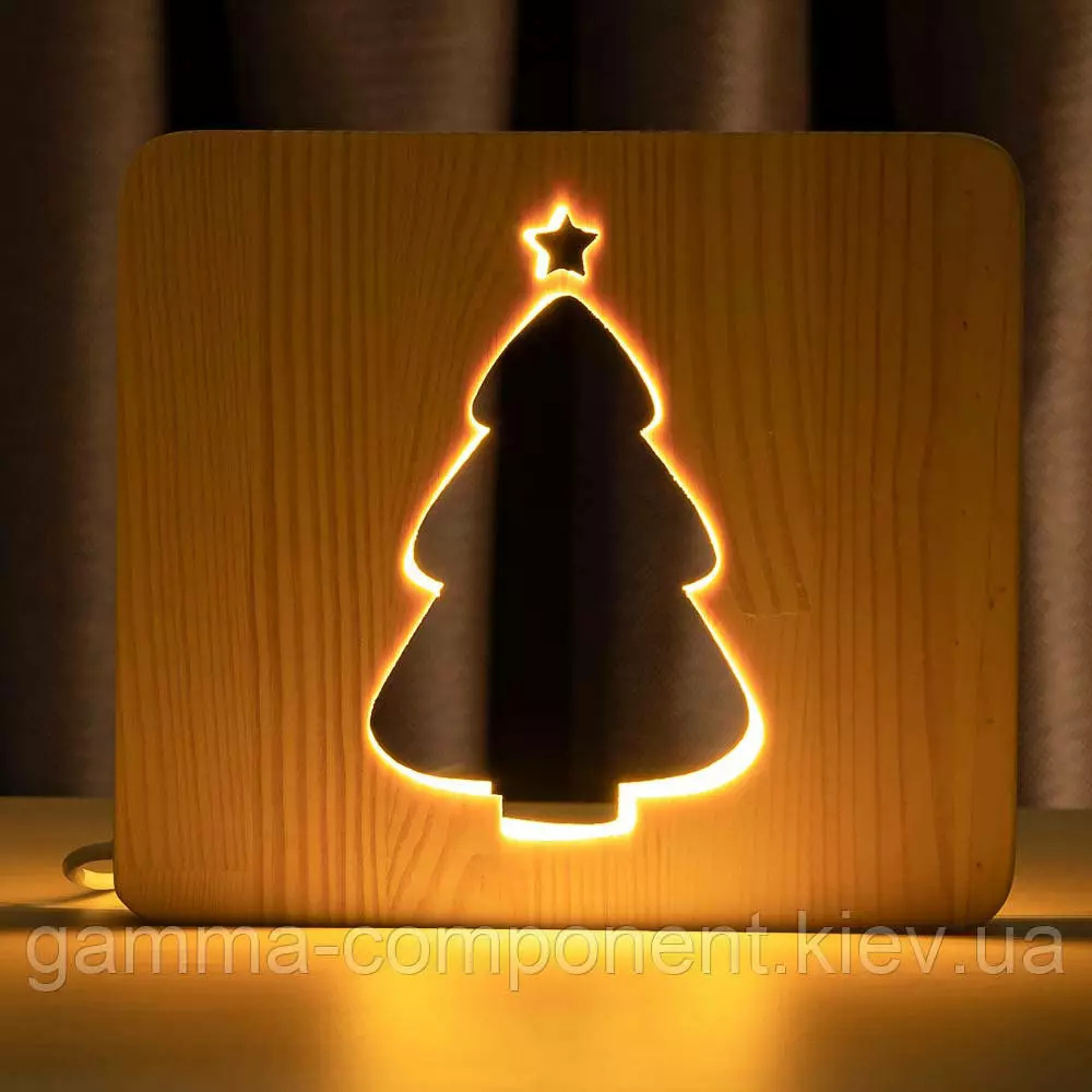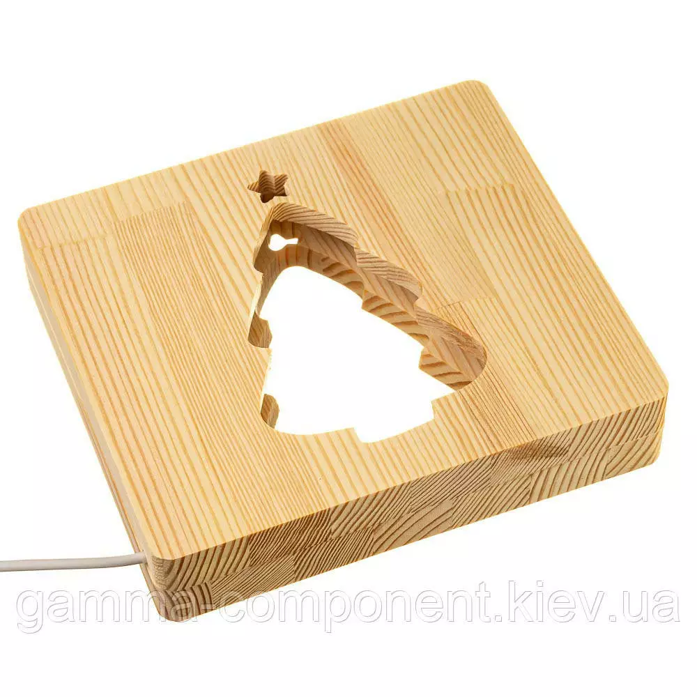 Світильник нічник ArtEco Light з дерева LED "Ялинка під снігом" з пультом і регулюванням світла, колір теплий