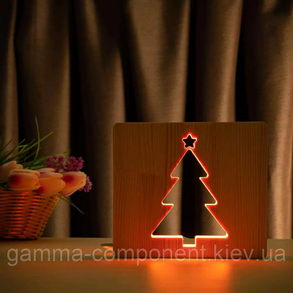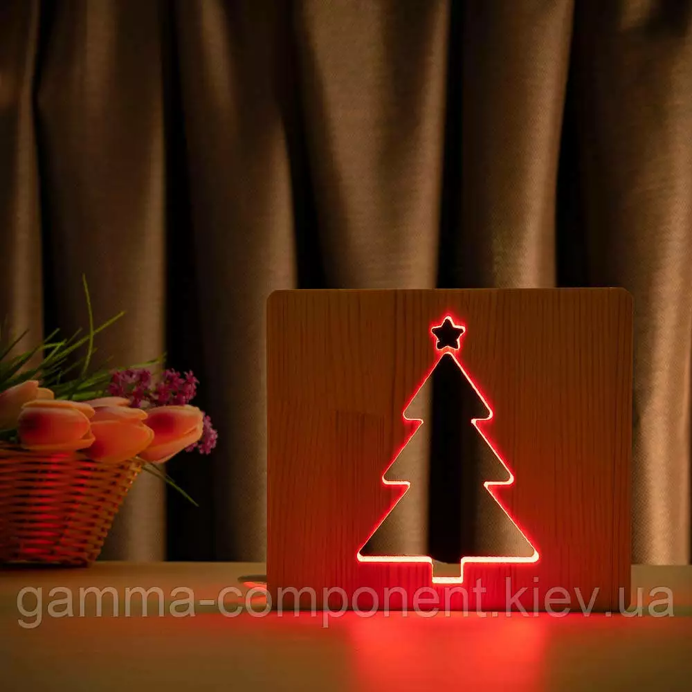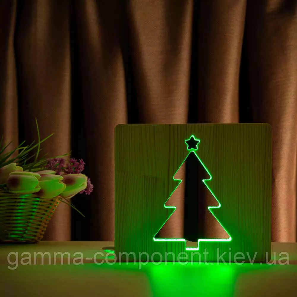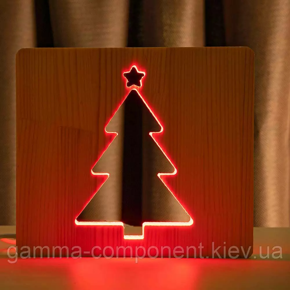 Світильник нічник ArtEco Light з дерева LED "Ялинка" з пультом і регулюванням кольори, RGB