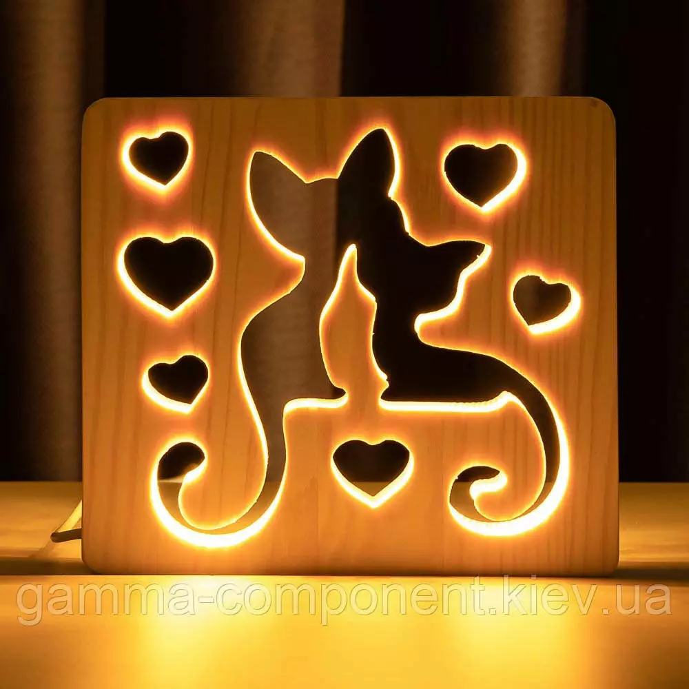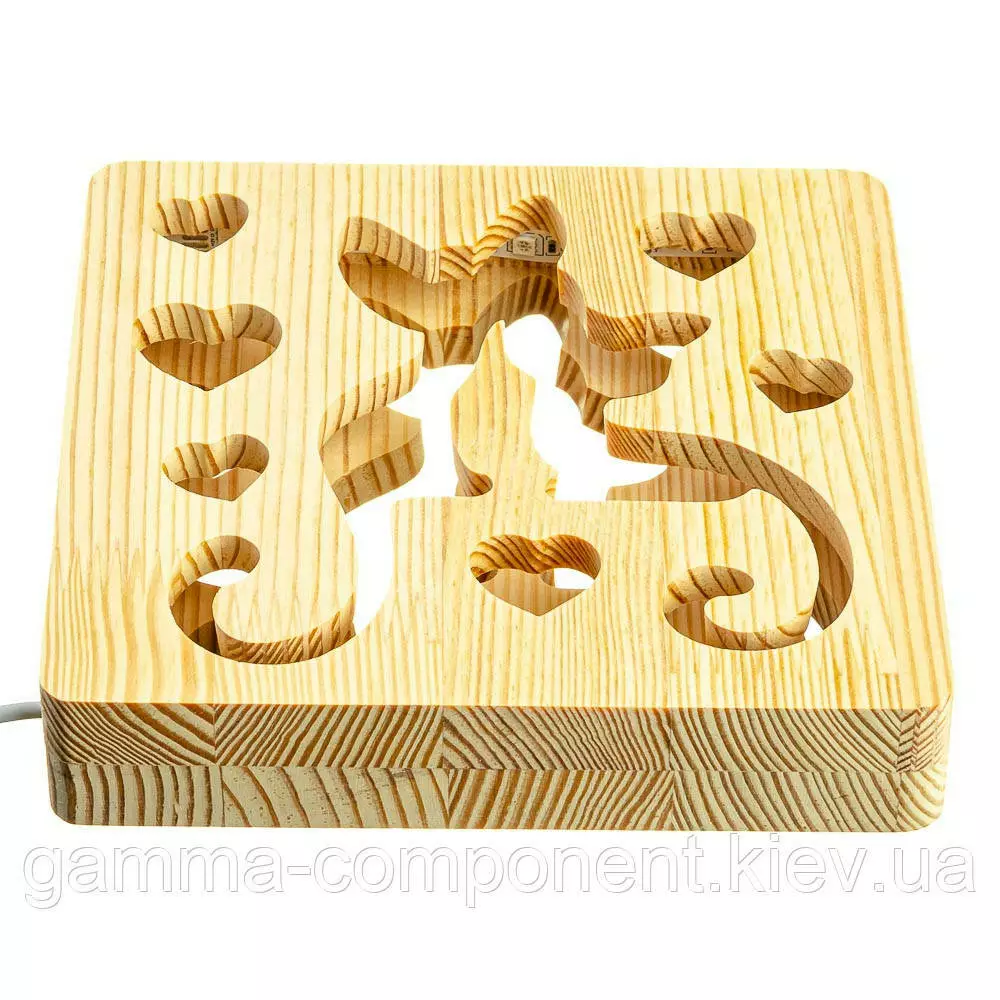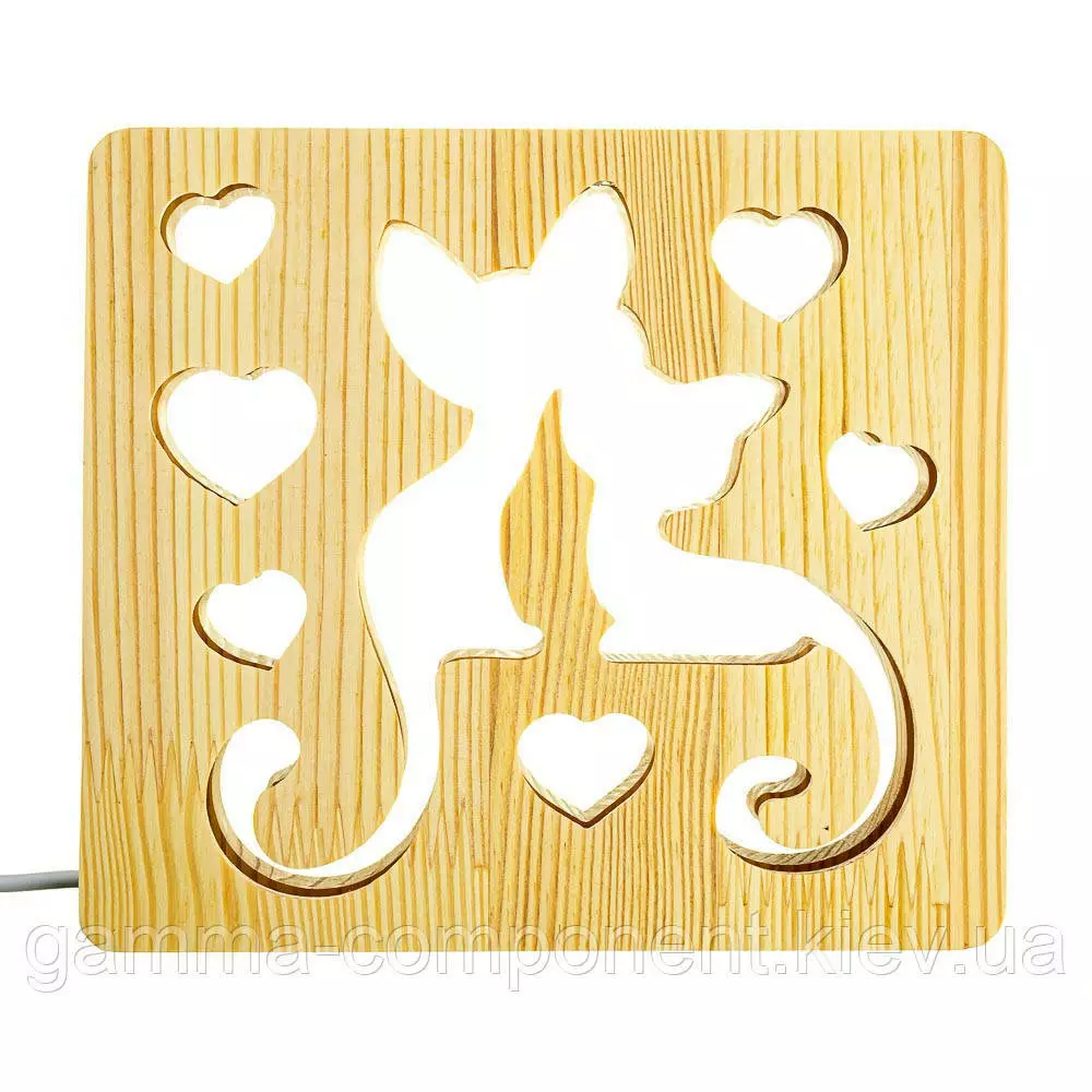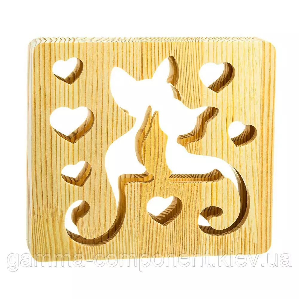 Світильник нічник з дерева LED "Коти і любов" з пультом і регулюванням світла, колір теплий білий