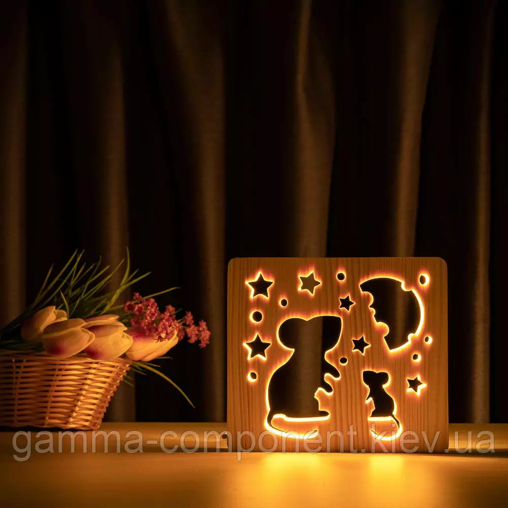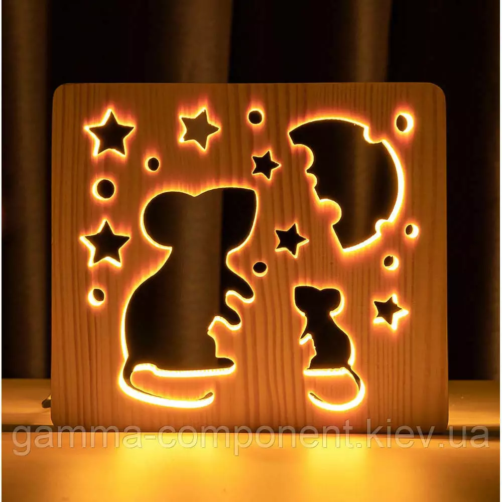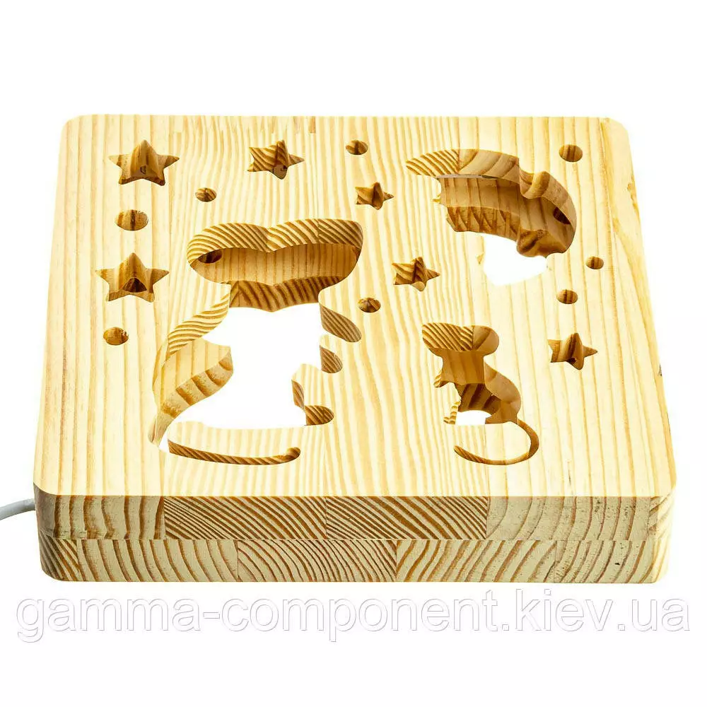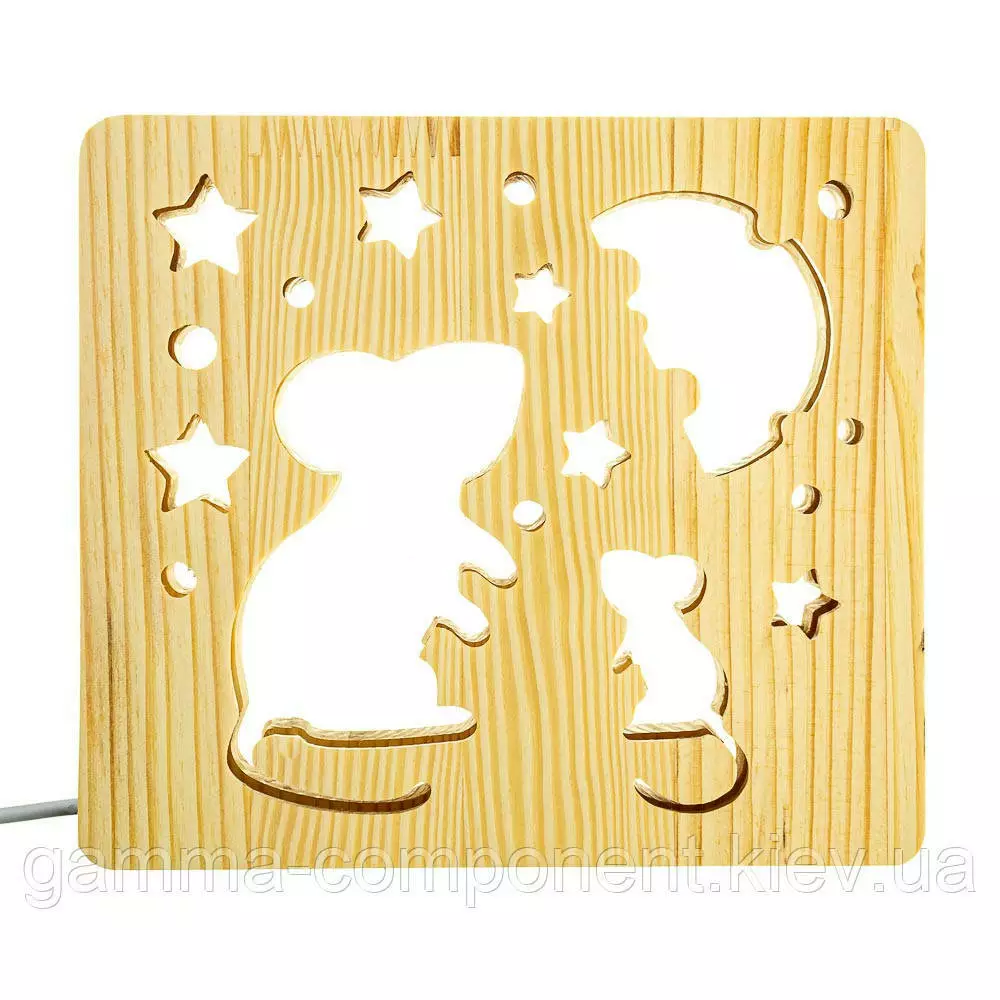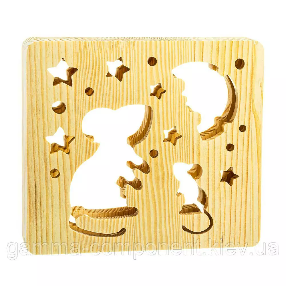 Світильник нічник з дерева LED "Мишки і сир" з пультом і регулюванням світла, колір теплий білий