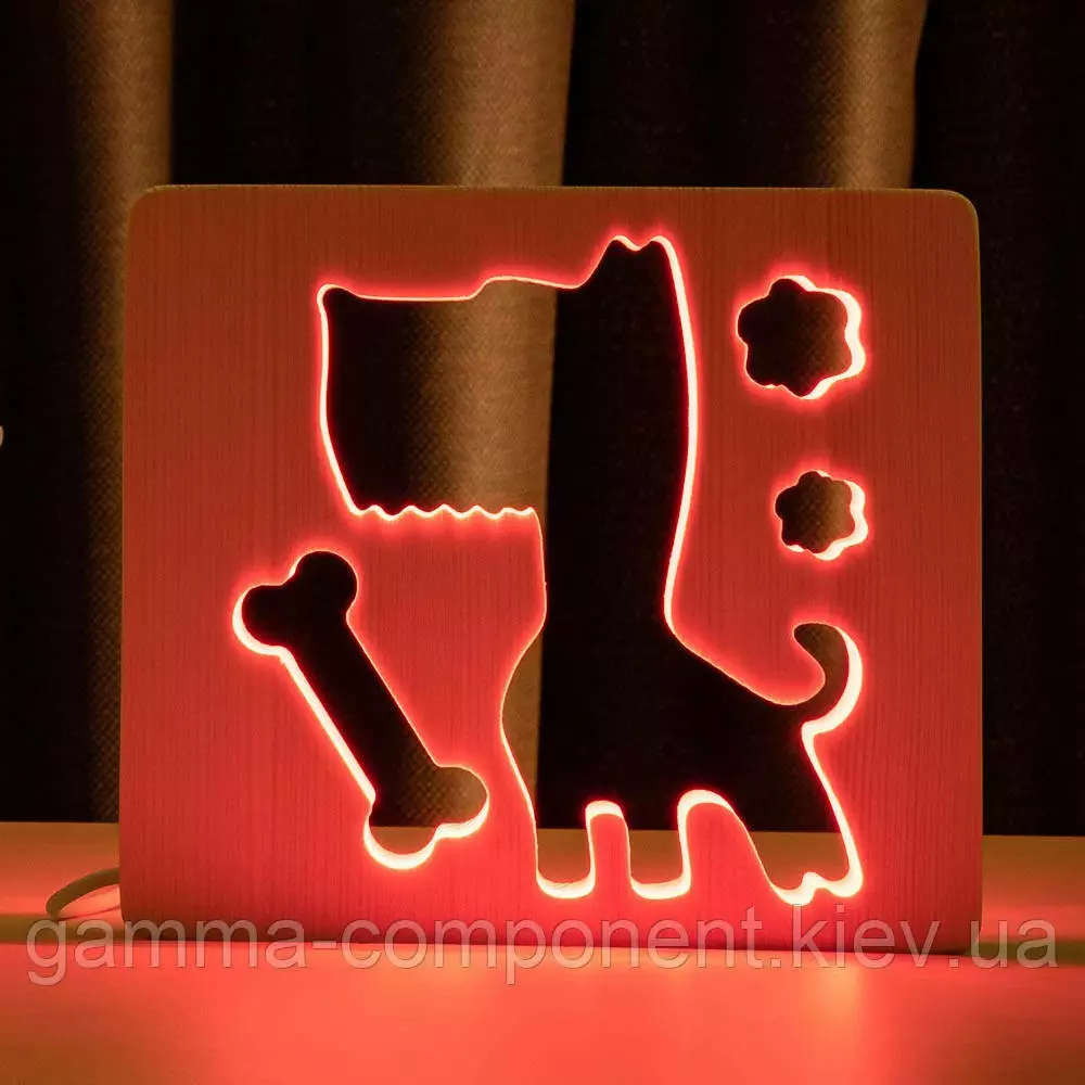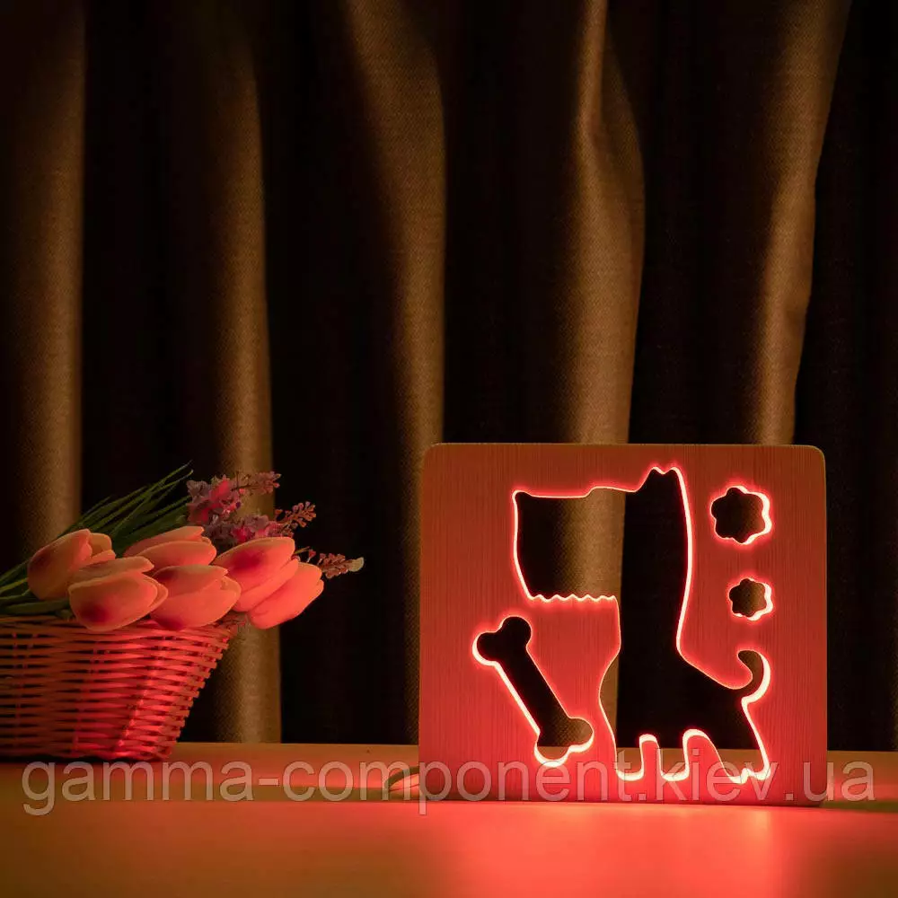 Світильник нічник з дерева LED "Пес і кістка" з пультом і регулюванням кольори, RGB