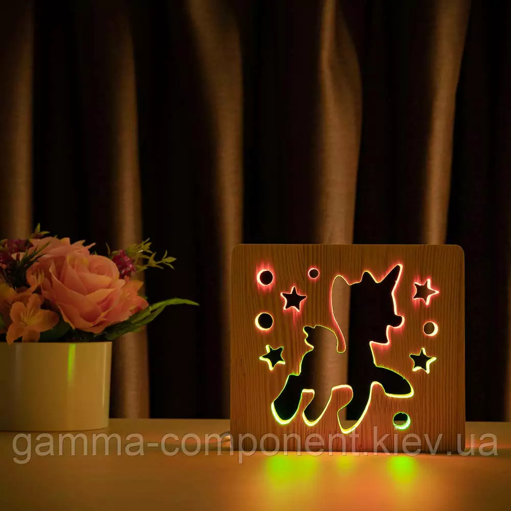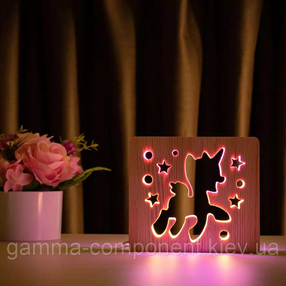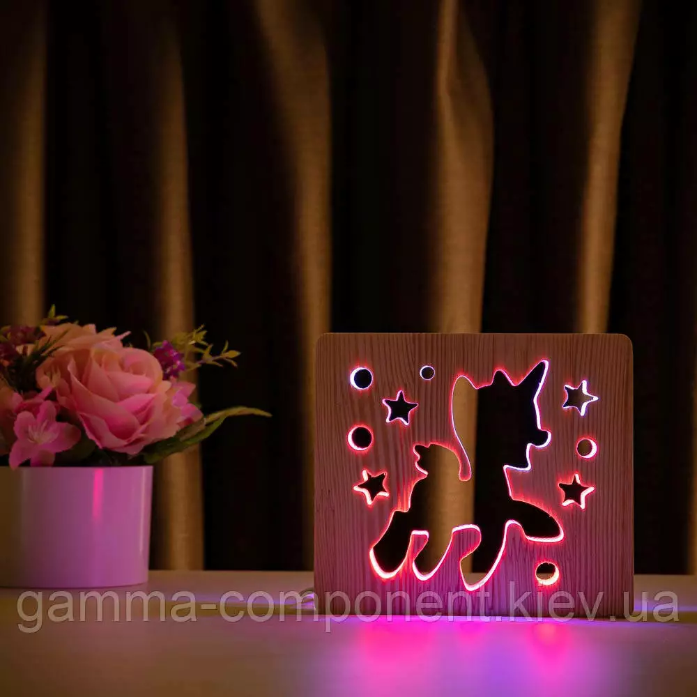 Світильник нічник з дерева LED "Поні-єдиноріг" з пультом і регулюванням кольору, подвійний RGB