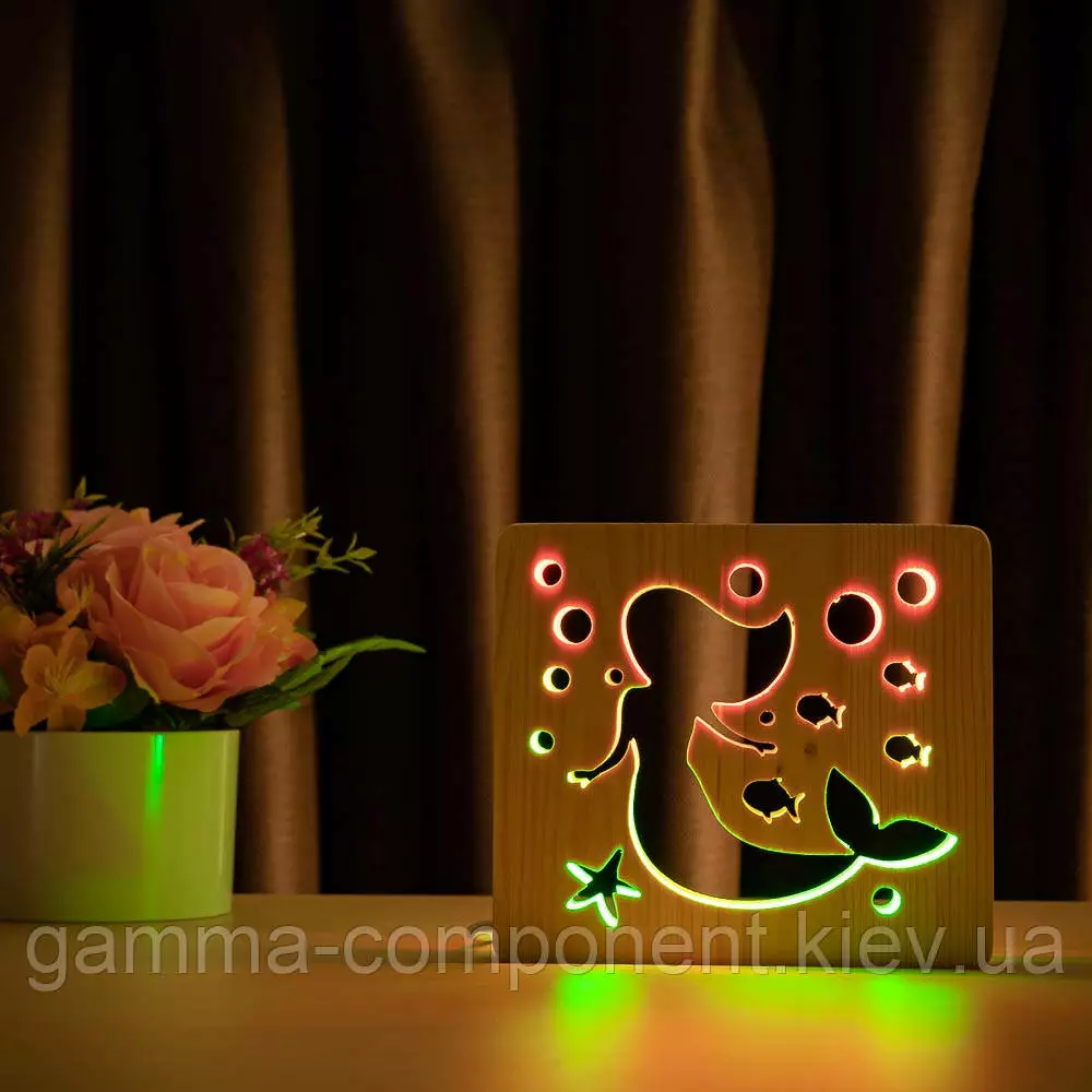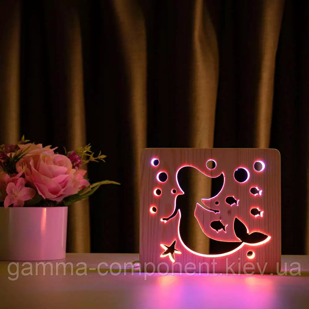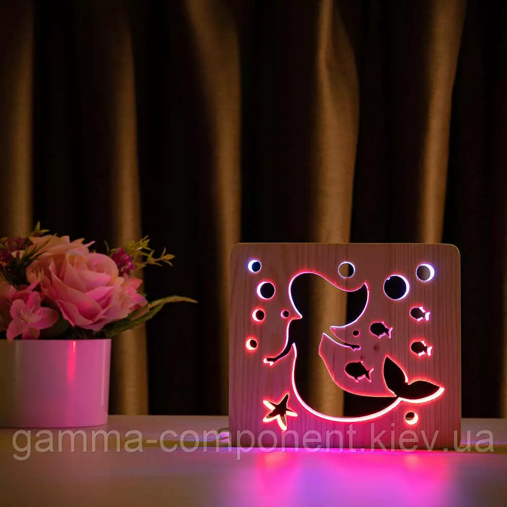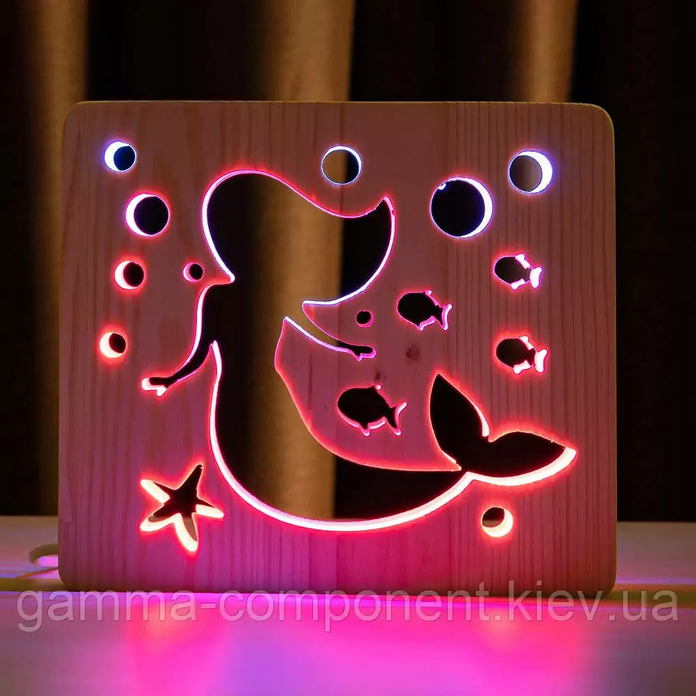 Світильник нічник з дерева LED "Русалонька" з пультом і регулюванням кольору, подвійний RGB